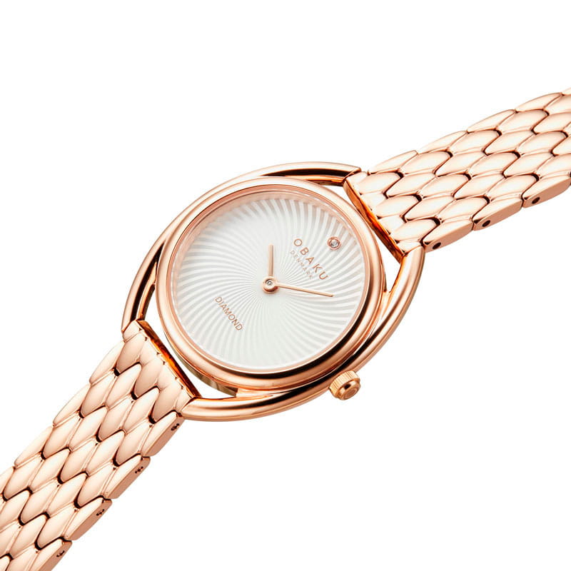 Женские наручные кварцевые часы с минеральным стекломМинеральное стеклоМинеральное стекло представляет собой искусственно выращенный минерал кварца. Такое стекло отличается особой устойчивостью к повреждениям и царапинам. Уступает по некоторым качествам сапфировому стеклу. Obaku Diamond V286LXVISV, кварцевый механизм с высокой точностью. Класс водозащиты: 30 метров, позволит защитить корпус от случайных брызг или капель дождя. Корпус часов изготовлен из стали с IP-покрытиемIP-покрытиеМетод ионного напыления. Демонстрирует повышенную устойчивость к истиранию, окислению и химическим веществам. Под воздействием высокого давления и температуры около 1500°C молекулы металла надёжно соединяются с частицами корпуса часов.. Стальной браслет на раскладной застёжкеРаскладная застёжкаТакой тип застёжки используется только на браслетах из металла. Она никогда не раскрывается полностью, происходит разделение на 2 и более частей. Раскладывающая застёжка снизит вероятность потери часов к минимуму. с IP-покрытиемIP-покрытиеМетод ионного напыления. Демонстрирует повышенную устойчивость к истиранию, окислению и химическим веществам. Под воздействием высокого давления и температуры около 1500°C молекулы металла надёжно соединяются с частицами корпуса часов.. Белый циферблат декорирован бриллиантом.
