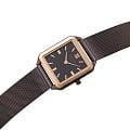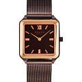 Женские кварцевые часы Obaku V309LXXNMN выполнены в минималистичном и элегантном дизайне. Корпус квадратной формы из нержавеющей стали с IP-покрытиемIP-покрытиеМетод ионного напыления. Демонстрирует повышенную устойчивость к истиранию, окислению и химическим веществам. Под воздействием высокого давления и температуры около 1500°C молекулы металла надёжно соединяются с частицами корпуса часов. имеет размеры 26 х 31 мм и толщину всего 4.8 мм, что делает их лёгкими и удобными на руке. Циферблат оснащён центральными часовой и минутной стрелками, дизайн подчёркивает отсутствие лишних деталей — только строгость линий и лаконичность. Защиту циферблата обеспечивает сапфировое стеклоСапфировое стеклоПрочный и надёжный материал из кристалла сапфира синтетического происхождения, характеризующийся особой твёрдостью и устойчивостью к царапинам и повреждениям., устойчивое к появлению царапин. Браслет выполнен по технологии из стали с коричневым покрытием и оснащён раскладным замком для надёжной фиксации на запястье. Водозащита позволяет использовать часы в повседневных условиях без риска повреждения от случайных брызг воды. Это сочетание лаконичности, прочности материалов и качества исполнения для тех, кто ценит современный стиль и комфорт в каждой детали.
