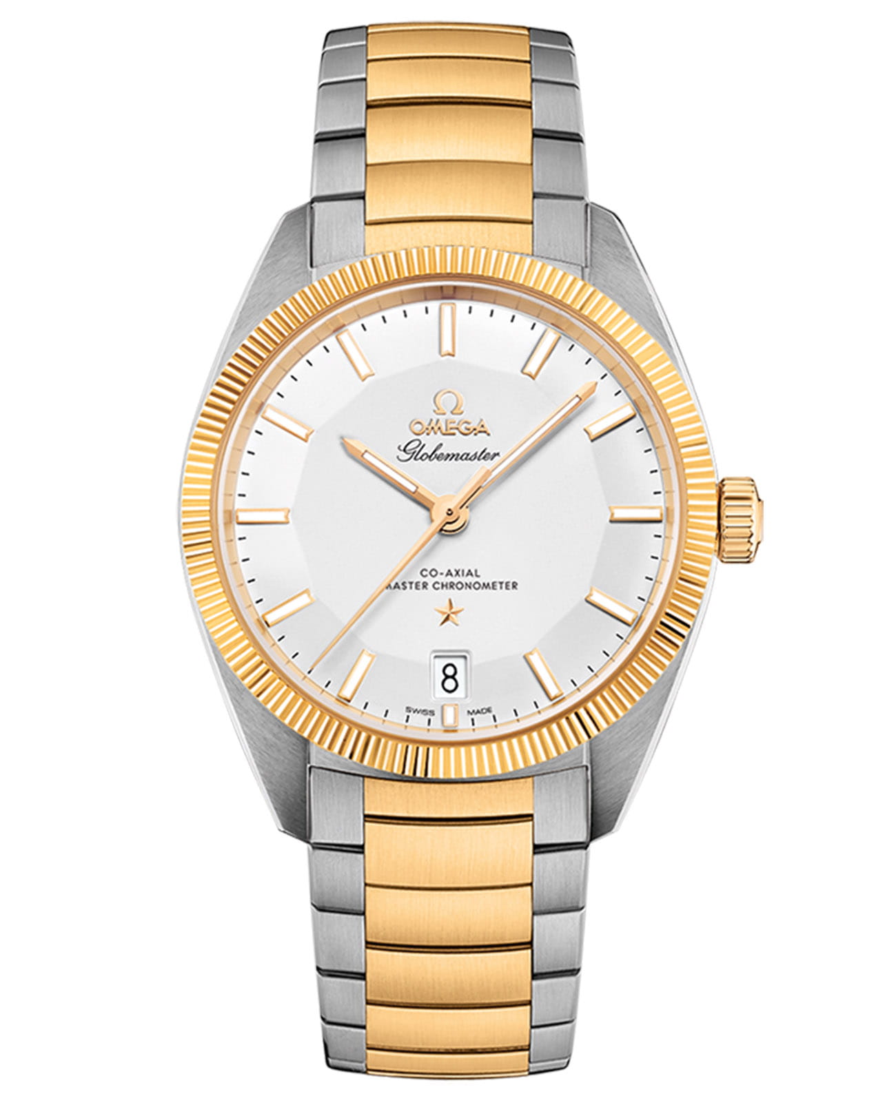 Часы Globemaster – воплощение часового совершенства OMEGA, где каждая деталь рассказывает историю превосходства. Как первопроходец, удостоенный звания мастер-хронометра, они устанавливают новые стандарты в мире точного времени. Эти часы приковывают внимание не только безупречным качеством, но и гармоничной элегантностью дизайна. Корпус из нержавеющей стали эффектно сочетается с выразительным рифленым безелемБезельВнешний ободок, закрепляющий стекло. В спортивных часах так называется поворотное кольцо с делениями на циферблате, выполняет роль таймера – замеряет отрезки времени на шкале. Неподвижный безель – элемент декора. Однонаправленно вращающийся безель на дайверских часах позволяет фиксировать моменты погружения и выныривания на поверхность. из 18-каратного желтого золота18-каратное золотоОбозначение по каратной системе пробирования, оно показывает, сколько драгоценного металла содержится в изделии. 18 карат - в составе 75% чистого золота, соответствует 750 пробе.