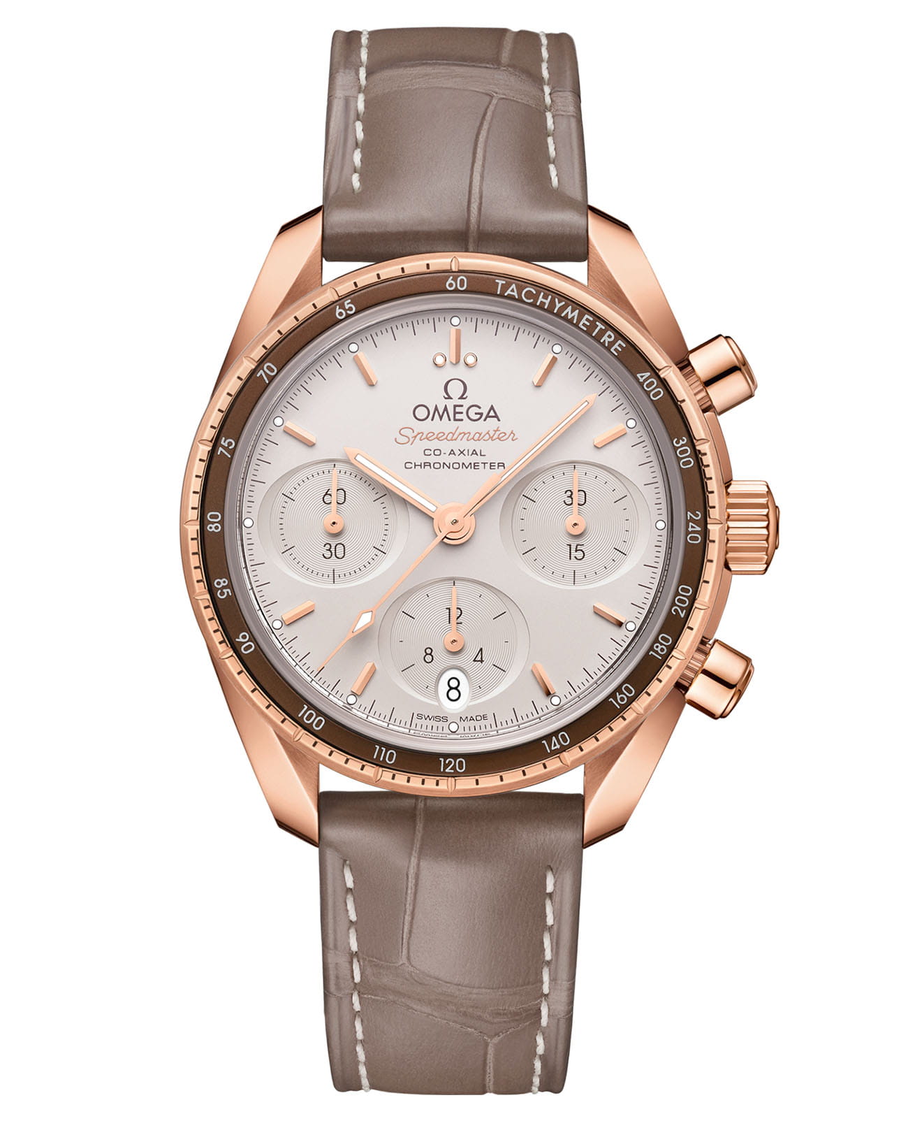 Коллекция Speedmaster 38 мм бережно сохраняет особенности легендарного хронографа OMEGA, представляя его в изысканной интерпретации с благородной палитрой. Корпус из 18-каратного золота Sedna™18-каратное золотоОбозначение по каратной системе пробирования, оно показывает, сколько драгоценного металла содержится в изделии. 18 карат - в составе 75% чистого золота, соответствует 750 пробе.