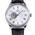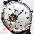 Orient Classic Open Heart AG00003W — изысканные классические часы, сочетающие элегантный стиль и высокую точность механики. Корпус диаметром 43 мм выполнен из нержавеющей стали с полированной отделкой, что придаёт модели благородный и утончённый вид. Белый циферблат с солнечным узором украшен римскими цифрами и изящными синими стрелками в стиле «бреге», обеспечивая превосходную читаемость. Окошко «Open Heart» на отметке 9 часов позволяет наблюдать за работой механизма, придавая модели сложность и индивидуальность. Защитное минеральное стеклоМинеральное стеклоМинеральное стекло представляет собой искусственно выращенный минерал кварца. Такое стекло отличается особой устойчивостью к повреждениям и царапинам. Уступает по некоторым качествам сапфировому стеклу. с выпуклой формой усиливает классический облик часов и защищает их от повреждений. Внутри установлен автоматический механизм Orient калибра F6T22 с возможностью ручного подзавода и функцией стоп-секунды, обеспечивающий точность хода и запас энергии до 40 часов. Модель комплектуется чёрным кожаным ремешком с тиснением под крокодила, а классическая застёжка гарантирует удобную фиксацию на запястье. Водонепроницаемость 50 метров защищает часы от брызг и кратковременного контакта с водой, делая их отличным выбором для повседневного использования.