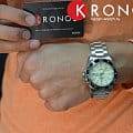Светлый циферблат с крупной индикацией времени не имеет лишних деталей. Японский автоматический калибр Orient 46943 имеет запас хода на 40 часов. Завинчивающаяся задняя крышка и заводная головка усиливают водостойкость в 200 метров. люминесцентная подсветкаЛюминесцентное покрытиеПозволяет считывать показания времени в темноте. Производители наносят на стрелки, часовые индексы, безель или поверхность циферблата светонакопительный состав, дающий холодное свечение. позволяет просматривать время и в темноте. На позиции 3 часов – окошко даты и дня недели.