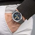 Мужские механические часы с автоподзаводом Orient — это стильный и надёжный аксессуар. Корпус диаметром 42 мм выполнен из нержавеющей стали. Циферблат синего цвета оформлен точками и стрелками. Присутствуют окошки для отображения дня недели и даты в положении 3 часов. Стрелки и метки с люминесцентным покрытиемЛюминесцентное покрытиеПозволяет считывать показания времени в темноте. Производители наносят на стрелки, часовые индексы, безель или поверхность циферблата светонакопительный состав, дающий холодное свечение., обеспечивающим хорошую читаемость в темноте. Циферблат защищён минеральным стекломМинеральное стеклоМинеральное стекло представляет собой искусственно выращенный минерал кварца. Такое стекло отличается особой устойчивостью к повреждениям и царапинам. Уступает по некоторым качествам сапфировому стеклу.. Механизм — японский автоматический калибр F6922 с 22 камнями, частотой 21600 полуколебаний в час и запасом хода 40 часов. Функция stop-second позволяет точно выставить время. Задняя крышка завинчивающаяся. Часы оснащены стальным браслетом на раскладной застёжкеРаскладная застёжкаТакой тип застёжки используется только на браслетах из металла. Она никогда не раскрывается полностью, происходит разделение на 2 и более частей. Раскладывающая застёжка снизит вероятность потери часов к минимуму.. Водонепроницаемость 50 м позволяет использовать часы при мытье рук или в дождь. Идеальный выбор для тех, кто ценит японское качество и универсальный дизайн.