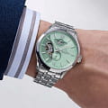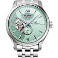 Оригинальные механические часы Orient Star Contemporary RE-AV0B11E представляют собой сочетание современного дизайна и инновационных технологий. Корпус диаметром 41 мм выполнен из нержавеющей стали, что обеспечивает долговечность и презентабельный внешний вид. Циферблат мятно-зелёного цвета украшен индексами и серебряными стрелками, создавая ощущение свежести и активности, напоминающее лёгкий бриз над голубым океаном. Особенностью модели является полускелетонный дизайн, который позволяет взглянуть на сложный механизм внутри, добавляя элемент загадочности и технической красоты. Циферблат защищён сапфировым стекломСапфировое стеклоПрочный и надёжный материал из кристалла сапфира синтетического происхождения, характеризующийся особой твёрдостью и устойчивостью к царапинам и повреждениям., которое обладает высокой устойчивостью к царапинам и обеспечивает четкость изображения. Часы также оснащены дополнительным циферблатом с секундной стрелкой, и отдельной шкалой с запасом хода до 50 часов, добавляя практичности к своему классическому дизайну. Водозащита 100 метров делает часы практичными для повседневного использования, включая активности в воде. Дополняет образ металлический браслет, закрывающийся на надёжную раскладную застёжкуРаскладная застёжкаТакой тип застёжки используется только на браслетах из металла. Она никогда не раскрывается полностью, происходит разделение на 2 и более частей. Раскладывающая застёжка снизит вероятность потери часов к минимуму., что добавляет комфорта при ношении. Часы ограничены тиражом всего 700 экземпляров, что делает их особенно ценными для коллекционеров и любителей уникальных вещей. Orient Star Contemporary RE-AV0B11E — это выбор тех, кто ценит точность, качество и элегантный дизайн в одном аксессуаре. Эти часы станут прекрасным дополнением как к повседневной, так и к формальной одежде, подчеркивая ваш стиль и индивидуальность.
