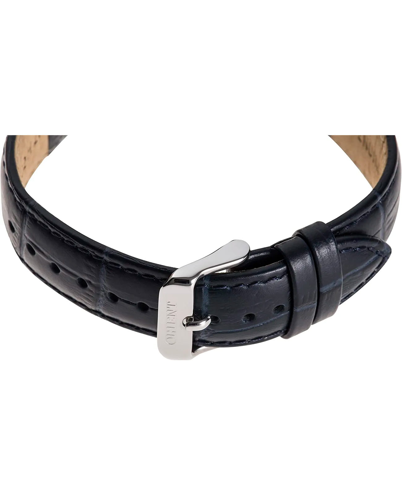 Часы оснащены кожаным ремешком шириной 21 мм, который дополняет их классический стиль. Ремешок на раскладной застёжкеРаскладная застёжкаТакой тип застёжки используется только на браслетах из металла. Она никогда не раскрывается полностью, происходит разделение на 2 и более частей. Раскладывающая застёжка снизит вероятность потери часов к минимуму.., что обеспечивает надежную фиксацию.