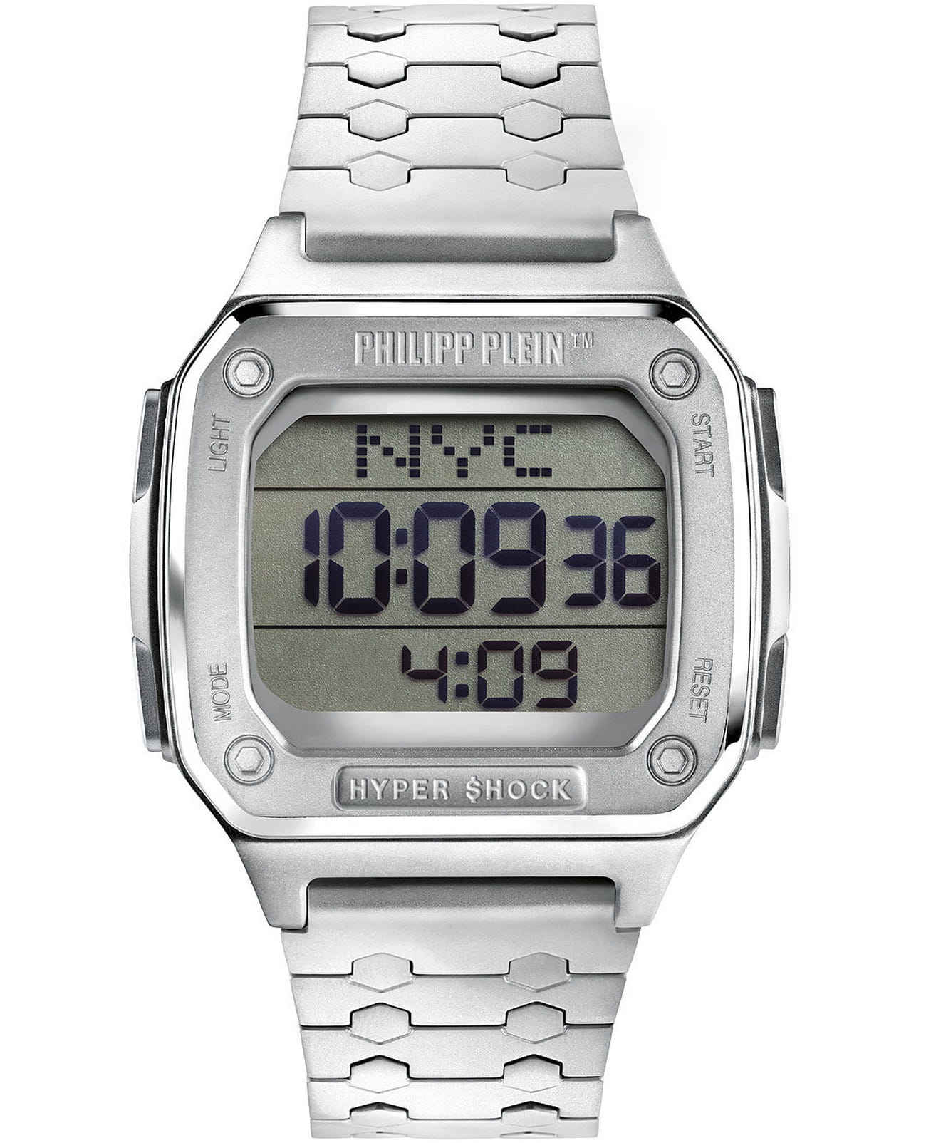 Электронные унисекс часы ХронографХронографФункция позволяет измерять отрезки времени с особой точностью: часы, минуты, секунды. Верным признаком хронографа является наличие на циферблате 3 дополнительных окошек-счётчиков. Philipp Plein Hyper Shock PWHAA0521, электронный механизм с высокой точностью. Класс водозащиты: 50 метров, позволит защитить корпус от случайных брызг или капель дождя. Прямоугольный корпус выполнен из нержавеющей стали с серебристого цвета. Браслет из нержавеющей стали шириной 22 мм, со стандартной застежкой.