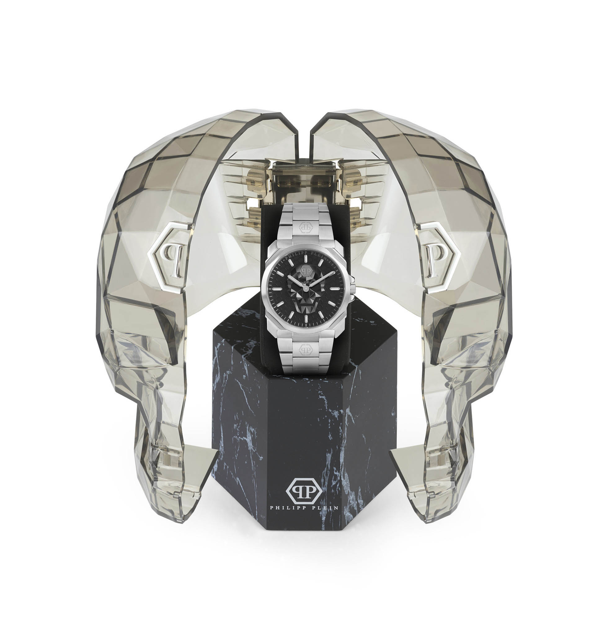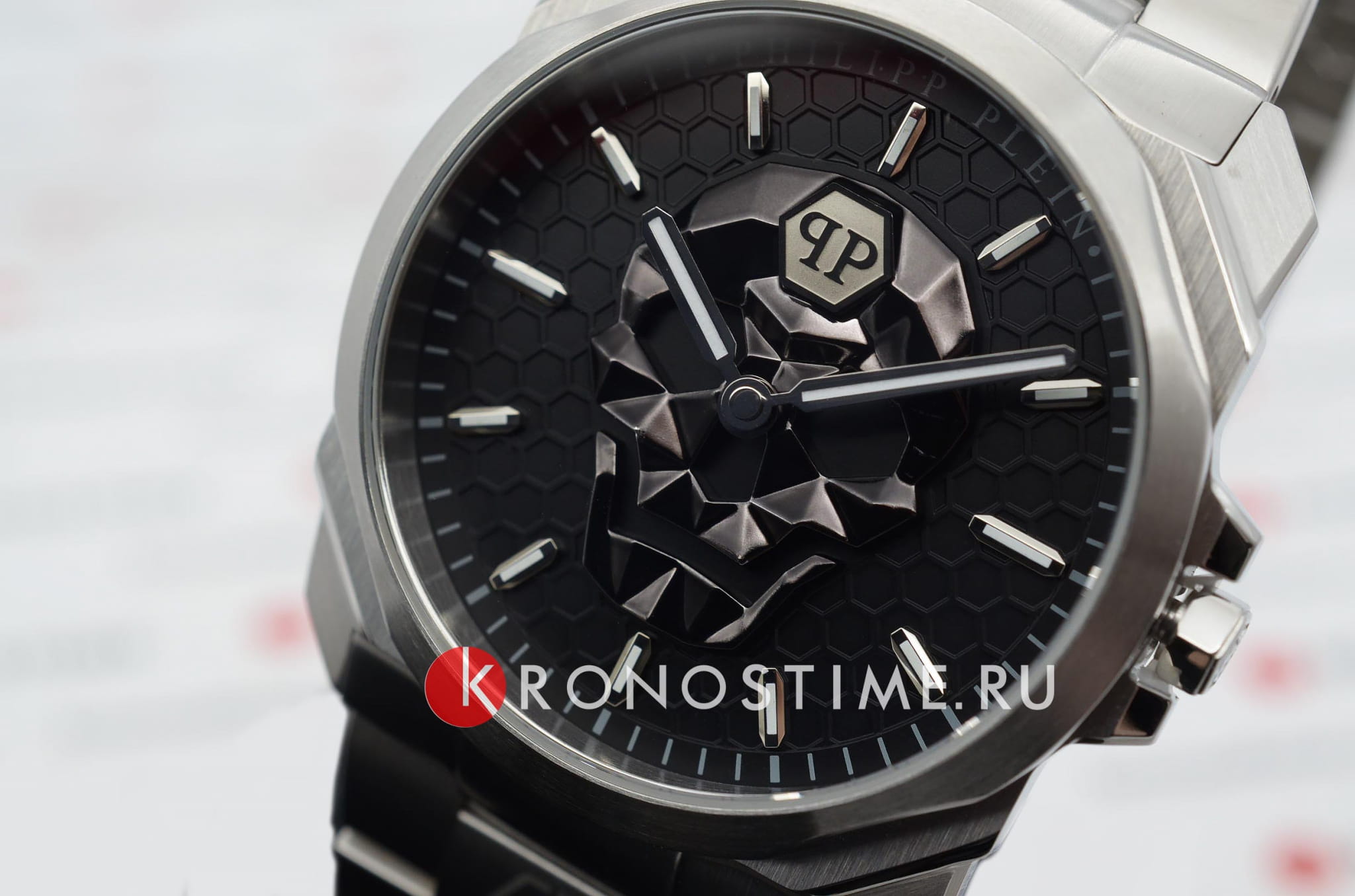 Мужские кварцевые часы с фирменным изображением черепа Philipp Plein The Skull King PWLAA0622, кварцевый механизм с высокой точностью. Класс водозащиты: 50 метров, позволит защитить корпус от случайных брызг или капель дождя. Корпус и браслет часов изготовлены из стали. Прочное минеральное стеклоМинеральное стеклоМинеральное стекло представляет собой искусственно выращенный минерал кварца. Такое стекло отличается особой устойчивостью к повреждениям и царапинам. Уступает по некоторым качествам сапфировому стеклу. устойчивое к мелким механическим повреждениям. Браслет дополняет застёжка-бабочка с кнопкамиЗастёжка "бабочка"Такой вид застёжки дополняется предохранителями, помогающими избежать случайного раскрытия браслета. Обладают изящным исполнением. .