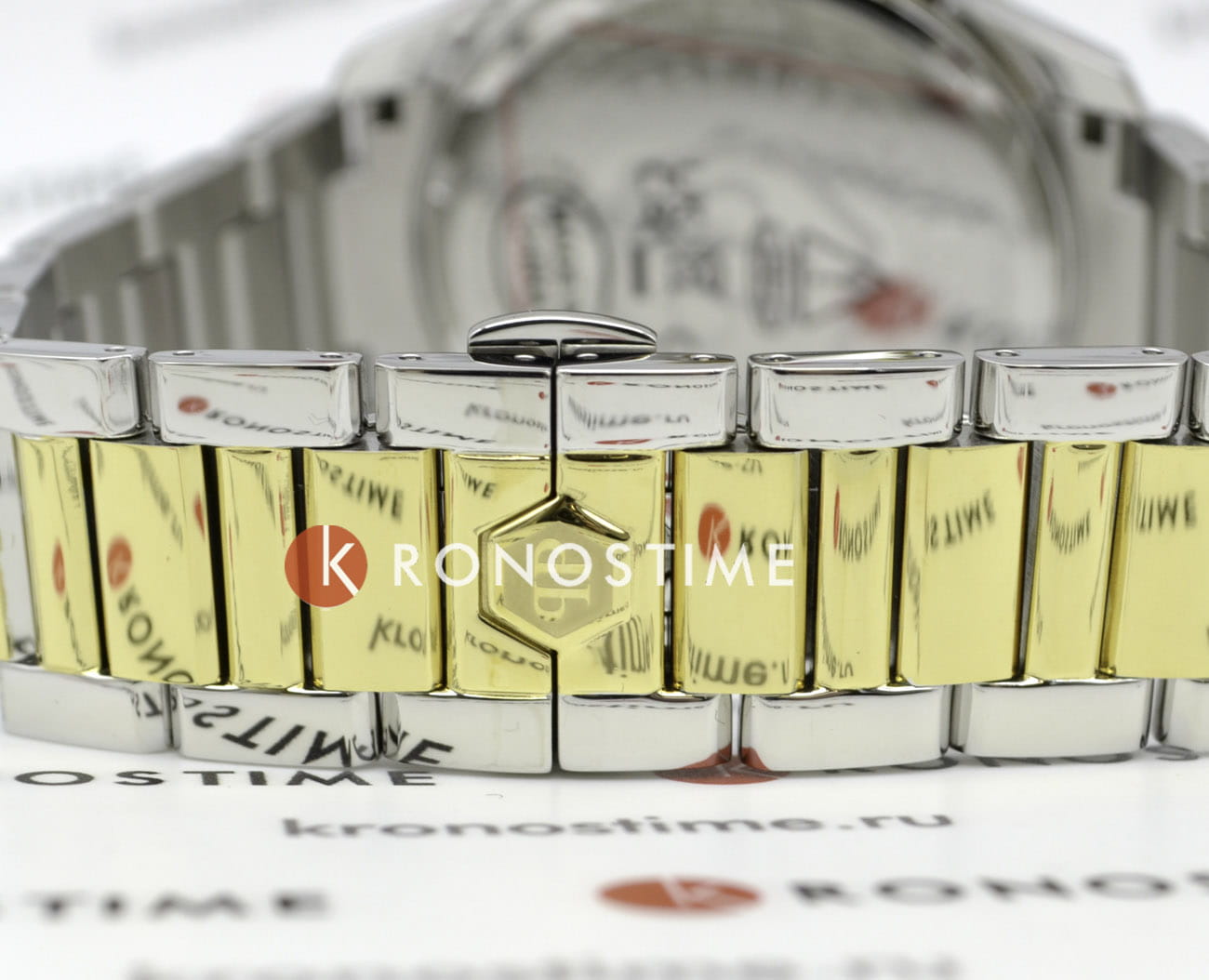 БезельБезельВнешний ободок, закрепляющий стекло. В спортивных часах так называется поворотное кольцо с делениями на циферблате, выполняет роль таймера – замеряет отрезки времени на шкале. Неподвижный безель – элемент декора. Однонаправленно вращающийся безель на дайверских часах позволяет фиксировать моменты погружения и выныривания на поверхность. с IP-покрытиемIP-покрытиеМетод ионного напыления. Демонстрирует повышенную устойчивость к истиранию, окислению и химическим веществам. Под воздействием высокого давления и температуры около 1500°C молекулы металла надёжно соединяются с частицами корпуса часов. добавляет часам дополнительную прочность и элегантность. Стальной браслет на застёжке-бабочке с кнопкамиЗастёжка "бабочка"Такой вид застёжки дополняется предохранителями, помогающими избежать случайного раскрытия браслета. Обладают изящным исполнением. не только выглядит стильно, но и обеспечивает удобство при ношении. Частичное IP-покрытиеIP-покрытиеМетод ионного напыления. Демонстрирует повышенную устойчивость к истиранию, окислению и химическим веществам. Под воздействием высокого давления и температуры около 1500°C молекулы металла надёжно соединяются с частицами корпуса часов. браслета подчеркивает его утонченность и делает часы еще более привлекательными.