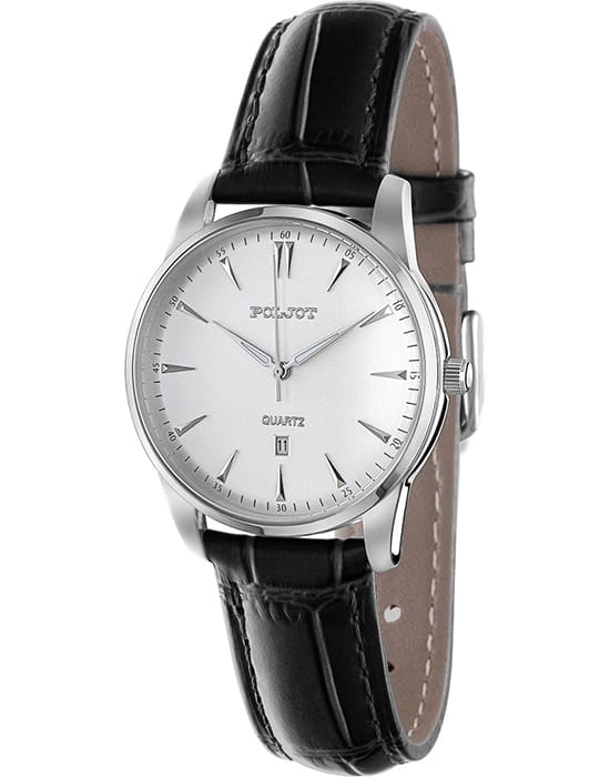 Poljot 2115.4861048 — утончённые женские часы, выполненные в минималистичном классическом стиле, где каждая деталь подчеркивает чистоту формы и изящество линий. Корпус из нержавеющей стали гармонично сочетается с циферблатом, украшенным аккуратными индексами и тонкими стрелками с люминесцентным покрытиемЛюминесцентное покрытиеПозволяет считывать показания времени в темноте. Производители наносят на стрелки, часовые индексы, безель или поверхность циферблата светонакопительный состав, дающий холодное свечение., создающими ощущение лёгкости и баланса. Надёжный кварцевый механизм обеспечивает стабильную точность, а окно даты на позиции «6 часов» добавляет функциональности без нарушения эстетики. Прочное минеральное стеклоМинеральное стеклоМинеральное стекло представляет собой искусственно выращенный минерал кварца. Такое стекло отличается особой устойчивостью к повреждениям и царапинам. Уступает по некоторым качествам сапфировому стеклу. защищает поверхность циферблата от царапин. Классический ремешок из натуральной кожи с фактурой под крокодила придаёт модели сдержанную элегантность. Poljot — это воплощение простоты, стиля и надёжности, идеальный выбор для женщины, предпочитающей чистую классику в современном исполнении.