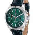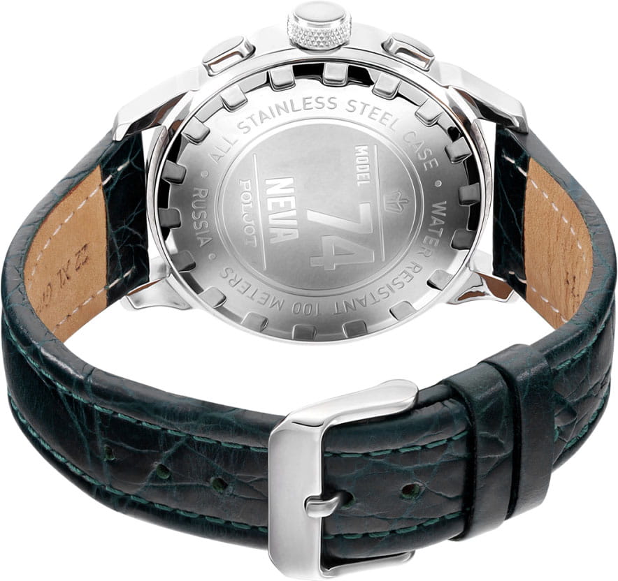 Poljot 6S21.741030 — классические мужские часы, в которых традиции российского часового мастерства сочетаются с современным дизайном. Корпус из нержавеющей стали подчёркивает солидность и надёжность модели, а насыщенный зелёный циферблат с лучевой текстурой придаёт образу выразительность и глубину. Два дополнительных счётчика хронографаХронографФункция позволяет измерять отрезки времени с особой точностью: часы, минуты, секунды. Верным признаком хронографа является наличие на циферблате 3 дополнительных окошек-счётчиков. обеспечивают точное измерение интервалов времени, дополняя функциональность часов. Контрастные стрелки и метки с люминесцентным покрытиемЛюминесцентное покрытиеПозволяет считывать показания времени в темноте. Производители наносят на стрелки, часовые индексы, безель или поверхность циферблата светонакопительный состав, дающий холодное свечение. обеспечивают отличную читаемость даже в условиях слабого освещения. Прочное минеральное стеклоМинеральное стеклоМинеральное стекло представляет собой искусственно выращенный минерал кварца. Такое стекло отличается особой устойчивостью к повреждениям и царапинам. Уступает по некоторым качествам сапфировому стеклу. защищает циферблат от царапин, а ремешок из натуральной кожи с классической пряжкой гарантирует комфорт и элегантную посадку на запястье. Poljot — это надёжный спутник современного мужчины, объединяющий точность, стиль и характер.