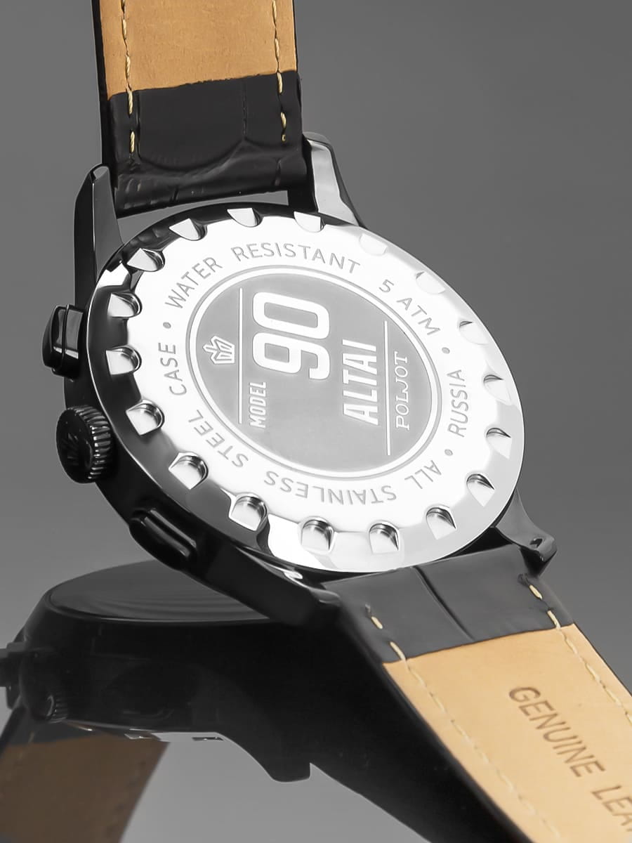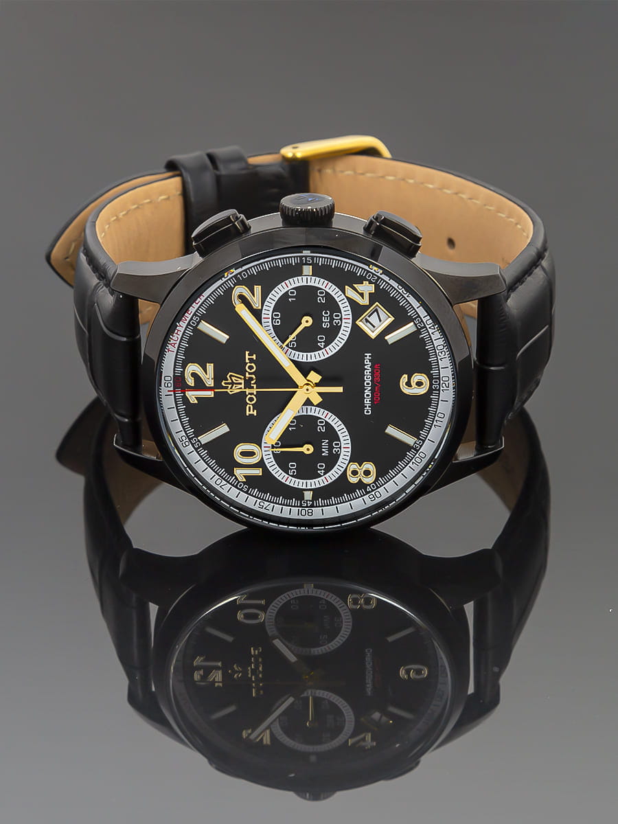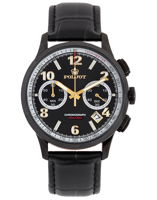 Poljot 6S21.904216 — современные мужские часы с выразительным спортивным дизайном и надёжной функциональностью. Корпус из нержавеющей стали с с PVD-покрытиемPVDУльтратонкое покрытие наносится в технике вакуумного напыления, сочетает в себе нитрид титана особой прочности со слоем золота или оксида хрома. Несёт в себе декоративную или защитную функцию. подчёркивает прочность и уверенный характер модели, а глубокий циферблат с счётчиками хронографаХронографФункция позволяет измерять отрезки времени с особой точностью: часы, минуты, секунды. Верным признаком хронографа является наличие на циферблате 3 дополнительных окошек-счётчиков. и аккуратным окном даты придаёт часам динамичный вид. Контрастные стрелки и метки с люминесцентным покрытиемЛюминесцентное покрытиеПозволяет считывать показания времени в темноте. Производители наносят на стрелки, часовые индексы, безель или поверхность циферблата светонакопительный состав, дающий холодное свечение. обеспечивают удобство считывания информации в любое время суток, а внешняя шкала тахиметраТахиметрРазмеченная шкала, располагается на ободке или безеле часов. Тахиметр позволяет рассчитать скорость на определённом участке пути, расстояние измеряется в километрах или милях. добавляет спортивную функциональность. Прочное минеральное стеклоМинеральное стеклоМинеральное стекло представляет собой искусственно выращенный минерал кварца. Такое стекло отличается особой устойчивостью к повреждениям и царапинам. Уступает по некоторым качествам сапфировому стеклу. защищает циферблат от царапин, а ремешок из натуральной кожи гарантирует комфорт и элегантную посадку на запястье. Poljot — это гармония классики и спортивного духа, созданная для мужчин, ценящих точность, надёжность и уверенный стиль.