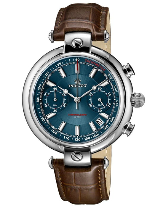 Poljot 6S21.961227 “Baikal” — элегантные кварцевые мужские часы, в которых классическая строгость сочетается с выразительным российским характером. Корпус из нержавеющей стали с крупными декоративными ушками придаёт модели солидность и узнаваемость, а глубокий циферблат с контрастными стрелками и индексами с люминесцентным покрытиемЛюминесцентное покрытиеПозволяет считывать показания времени в темноте. Производители наносят на стрелки, часовые индексы, безель или поверхность циферблата светонакопительный состав, дающий холодное свечение. подчёркивает точность и функциональность. Два дополнительных счётчика хронографаХронографФункция позволяет измерять отрезки времени с особой точностью: часы, минуты, секунды. Верным признаком хронографа является наличие на циферблате 3 дополнительных окошек-счётчиков. обеспечивают измерение времени с высокой точностью, а окно даты добавляет практичности. Прочное минеральное стеклоМинеральное стеклоМинеральное стекло представляет собой искусственно выращенный минерал кварца. Такое стекло отличается особой устойчивостью к повреждениям и царапинам. Уступает по некоторым качествам сапфировому стеклу. защищает циферблат от царапин, а ремешок из натуральной кожи с классической пряжкой гарантирует комфорт и надёжную фиксацию на запястье. Poljot “Baikal” — это сочетание традиций, надёжности и уверенного стиля, созданное для мужчин, ценящих точность и благородную сдержанность.