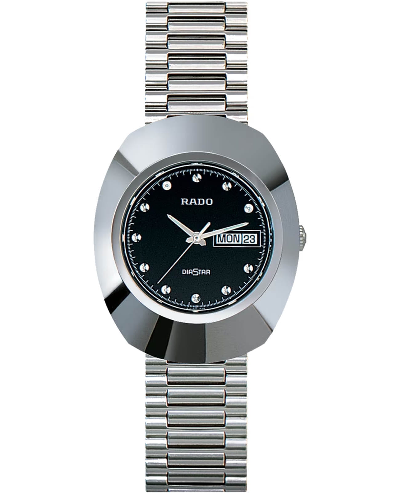 Мужские часы Rado The Original R12391153 с надёжным кварцевым механизмом. Корпус и браслет часов выполнены из нержавеющей стали. Стрелки с люминесцентным покрытиемЛюминесцентное покрытиеПозволяет считывать показания времени в темноте. Производители наносят на стрелки, часовые индексы, безель или поверхность циферблата светонакопительный состав, дающий холодное свечение. Super-LumiNova. Стальной браслет на раскладной застёжкеРаскладная застёжкаТакой тип застёжки используется только на браслетах из металла. Она никогда не раскрывается полностью, происходит разделение на 2 и более частей. Раскладывающая застёжка снизит вероятность потери часов к минимуму.. Класс водозащиты: 30 метров, позволит защитить корпус от случайных брызг или капель дождя. Циферблат инкрустирован сапфирами. Окошки дня недели и даты находятся в положении 3 часа.