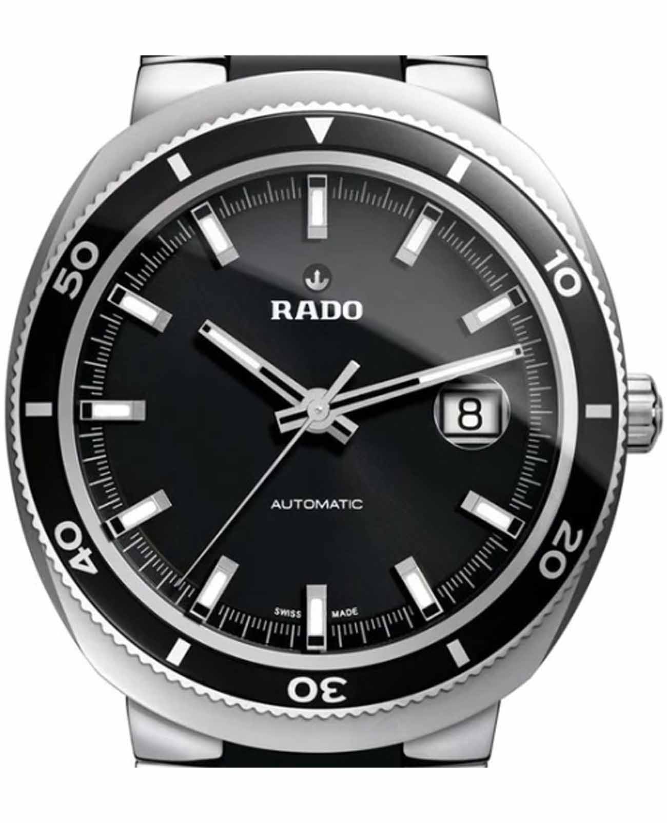 Мужские механические швейцарские часы с автоподзаводом Rado D-Star R15959152. Сапфировое стеклоСапфировое стеклоПрочный и надёжный материал из кристалла сапфира синтетического происхождения, характеризующийся особой твёрдостью и устойчивостью к царапинам и повреждениям. устойчивое к мелким механическим повреждениям. Корпус часов изготовлен из нержавеющей стали. БезельБезельВнешний ободок, закрепляющий стекло. В спортивных часах так называется поворотное кольцо с делениями на циферблате, выполняет роль таймера – замеряет отрезки времени на шкале. Неподвижный безель – элемент декора. Однонаправленно вращающийся безель на дайверских часах позволяет фиксировать моменты погружения и выныривания на поверхность. из высокотехнологичной керамикиВысокотехнологичная керамикаИнновационный запатентованный Rado материал с гладкой или матовой поверхностью. Керамика за счёт кристаллической структуры обладает повышенной устойчивостью от возникновения царапин. Материал способен принимать температуру тела человека, обеспечивая невероятный комфорт при ношении.. Окошко даты находится в положении 3 часа. Стрелки с люминесцентным покрытиемЛюминесцентное покрытиеПозволяет считывать показания времени в темноте. Производители наносят на стрелки, часовые индексы, безель или поверхность циферблата светонакопительный состав, дающий холодное свечение.. Класс водозащиты: 200 метров, позволит плавать, нырять и заниматься другими водными видами спорта. Браслет из стали и высокотехнологичной керамикиВысокотехнологичная керамикаИнновационный запатентованный Rado материал с гладкой или матовой поверхностью. Керамика за счёт кристаллической структуры обладает повышенной устойчивостью от возникновения царапин. Материал способен принимать температуру тела человека, обеспечивая невероятный комфорт при ношении. на раскладной застёжкеРаскладная застёжкаТакой тип застёжки используется только на браслетах из металла. Она никогда не раскрывается полностью, происходит разделение на 2 и более частей. Раскладывающая застёжка снизит вероятность потери часов к минимуму..
