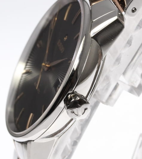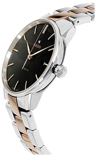 Мужские швейцарские механические часы с автоподзаводом Rado Coupole R22860162. Корпус часов изготовлен из нержавеющей стали. Сапфировое стеклоСапфировое стеклоПрочный и надёжный материал из кристалла сапфира синтетического происхождения, характеризующийся особой твёрдостью и устойчивостью к царапинам и повреждениям. устойчивое к мелким механическим повреждениям. Стальной браслет с частичным PVD-покрытиемPVDУльтратонкое покрытие наносится в технике вакуумного напыления, сочетает в себе нитрид титана особой прочности со слоем золота или оксида хрома. Несёт в себе декоративную или защитную функцию. на раскладной застёжкеРаскладная застёжкаТакой тип застёжки используется только на браслетах из металла. Она никогда не раскрывается полностью, происходит разделение на 2 и более частей. Раскладывающая застёжка снизит вероятность потери часов к минимуму.. Класс водозащиты: 50 метров, позволит защитить корпус от случайных брызг или капель дождя. Окошко даты находится в положении 3 часа.