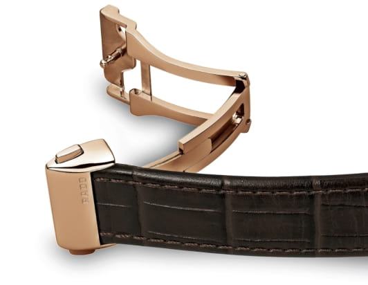 Премиальная модель очаровывает классическим исполнением, не лишённым роскошного стиля. Каждый по достоинству оценит ремешок из натуральной кожи с имитацией рисунка кожи крокодила. Надёжный стальной корпус защищает автоматический механизм ETA C07.611 с увеличенным резервом хода до 80 часов. Прозрачная задняя крышка позволяет наблюдать за движением деталей. Стекло из сапфира с антибликовой поверхностью. PVD-покрытиеPVDУльтратонкое покрытие наносится в технике вакуумного напыления, сочетает в себе нитрид титана особой прочности со слоем золота или оксида хрома. Несёт в себе декоративную или защитную функцию. цвета розового золота. Водонепроницаемость 50 метров. . Окошко даты в положении 3 часа. Диаметр корпуса: 37,7 мм.