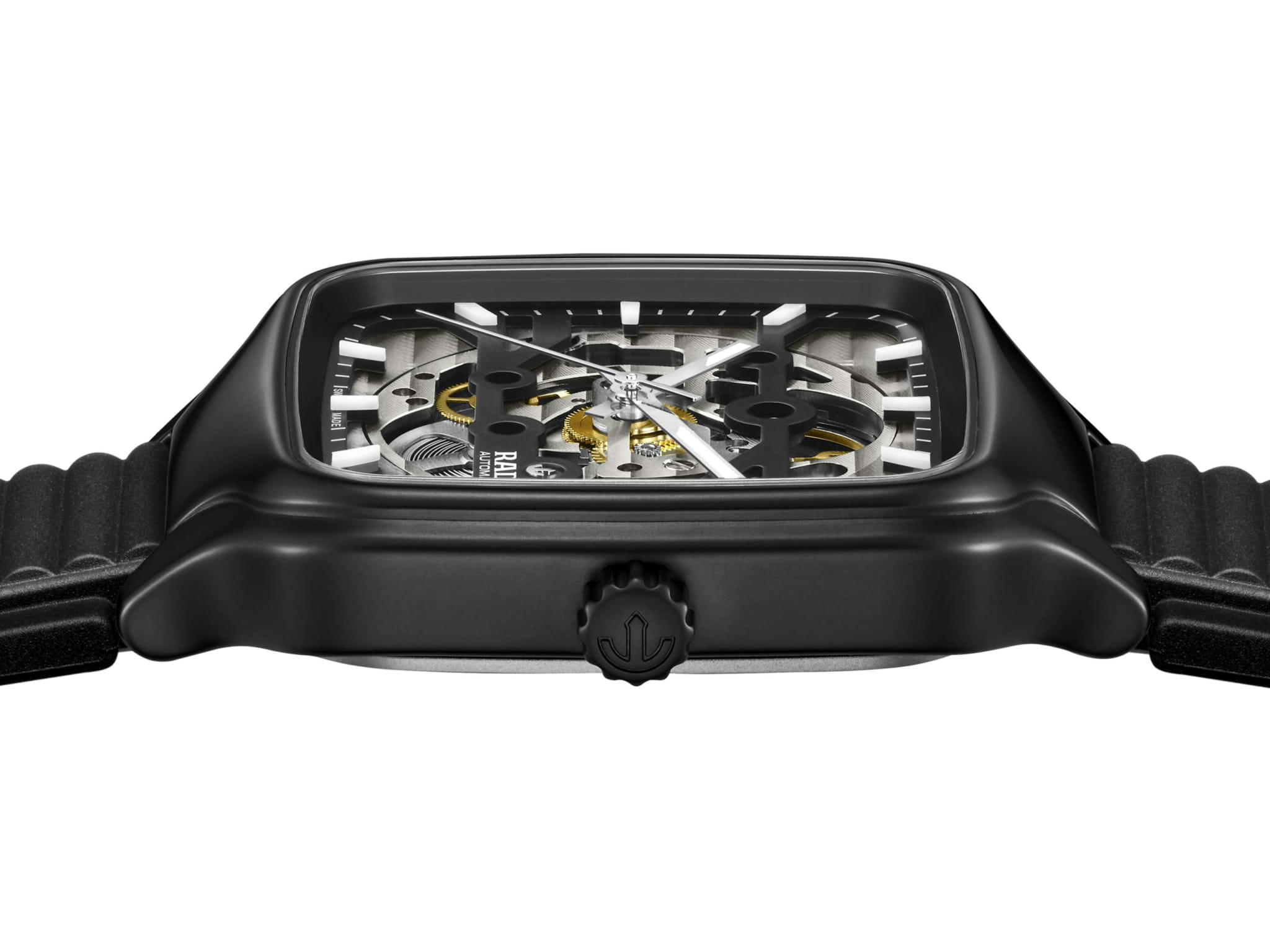 Универсальные механические часы с автоподзаводом Rado из коллекции True Square — это уникальное сочетание передовых технологий и высокого часового искусства. Корпус квадратной формы, размером 38 мм и толщиной 9,7 мм, выполнен из матовой высокотехнологичной керамикиВысокотехнологичная керамикаИнновационный запатентованный Rado материал с гладкой или матовой поверхностью. Керамика за счёт кристаллической структуры обладает повышенной устойчивостью от возникновения царапин. Материал способен принимать температуру тела человека, обеспечивая невероятный комфорт при ношении. чёрного цвета, что обеспечивает исключительную прочность, лёгкость и гипоаллергенность. Циферблат частично скелетонизирован, открывая вид на сложную структуру механизма. Верхний слой с пескоструйной обработкой оформлен белыми индексами и минутной шкалой с люминесцентным покрытиемЛюминесцентное покрытиеПозволяет считывать показания времени в темноте. Производители наносят на стрелки, часовые индексы, безель или поверхность циферблата светонакопительный состав, дающий холодное свечение. Super-Luminova®, обеспечивающими отличную читаемость. Нижний слой демонстрирует декоративные узоры «Côtes de Genève», гармонирующие с механизмом. В положении 4 часов расположен подвижной якорь — символ бренда. Циферблат защищён плоским сапфировым стекломСапфировое стеклоПрочный и надёжный материал из кристалла сапфира синтетического происхождения, характеризующийся особой твёрдостью и устойчивостью к царапинам и повреждениям. с антибликовым покрытиемАнтибликовое покрытиеСлой оксида металла в 0,13-0,3 микрон, благодаря которому стекло часов не бликует и не отражает свет. Антибликовое покрытие уменьшает отражение света в 10 раз, обеспечивая отличную читаемость показателей циферблата.. Механизм — автоматический с антимагнитной пружиной Nivachron™Nivachron™Специально разработанный инновационный сплав Nivachron™ повышает устойчивость часов к воздействию магнитных полей., отрегулированный в пяти положениях, с запасом хода 80 часов. Часы оснащены каучуковым ремешком чёрного цвета и раскладывающейся застёжкой с удлинением из нержавеющей стали, покрытой матовой высокотехнологичной керамикойВысокотехнологичная керамикаИнновационный запатентованный Rado материал с гладкой или матовой поверхностью. Керамика за счёт кристаллической структуры обладает повышенной устойчивостью от возникновения царапин. Материал способен принимать температуру тела человека, обеспечивая невероятный комфорт при ношении.. Водонепроницаемость 50 м позволяет использовать часы в повседневных условиях. Гарантия — 5 лет. Идеальный выбор для тех, кто ценит инновации, дизайн и швейцарское качество.