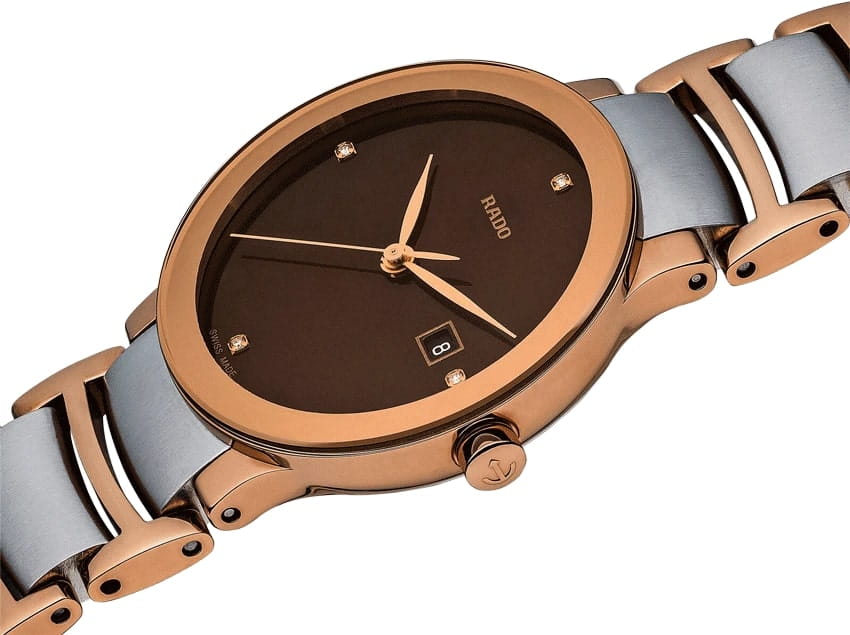 Женские швейцарские кварцевые часы из коллекции Centrix являют собой современный элемент роскошного стиля. Аксессуар в коричневом цвете станет достойным дополнением к образу. Сапфировое стеклоСапфировое стеклоПрочный и надёжный материал из кристалла сапфира синтетического происхождения, характеризующийся особой твёрдостью и устойчивостью к царапинам и повреждениям.. Это стильная деталь современного имиджа, особый шик ей придают 4 бриллианта цвета Top Wesselton. Надёжный корпус и браслет из хирургической стали с PVD-покрытиемPVDУльтратонкое покрытие наносится в технике вакуумного напыления, сочетает в себе нитрид титана особой прочности со слоем золота или оксида хрома. Несёт в себе декоративную или защитную функцию.. Апертура даты. Диаметр корпуса: 28 мм. Производство и сборка: Швейцария.
