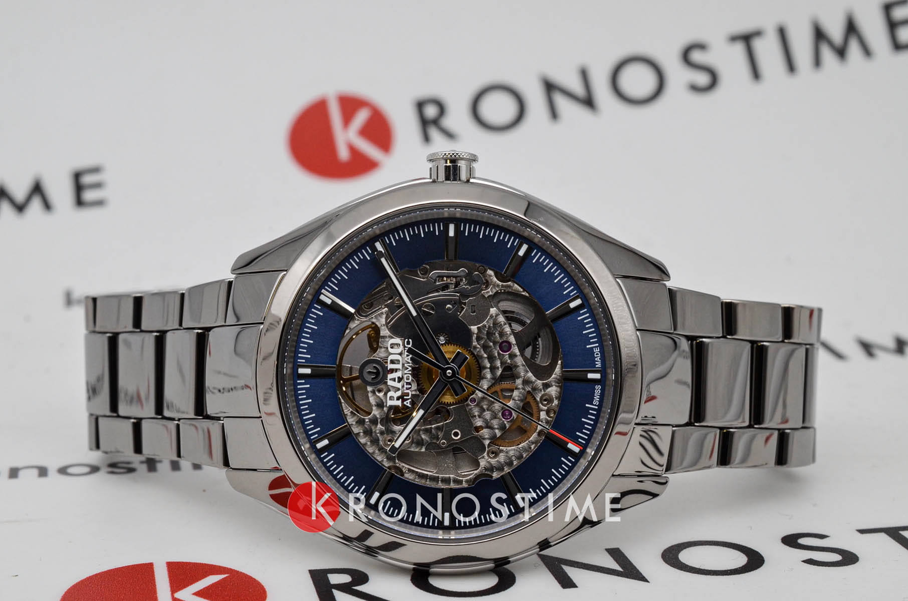 Мужские механические швейцарские часы-скелетоны Rado Hyperchrome Automatic R32020202. Сапфировое стеклоСапфировое стеклоПрочный и надёжный материал из кристалла сапфира синтетического происхождения, характеризующийся особой твёрдостью и устойчивостью к царапинам и повреждениям. устойчивое к мелким механическим повреждениям. Корпус часов изготовлен из нержавеющей стали. Скелетонизированный циферблат. Стрелки с люминесцентным покрытиемЛюминесцентное покрытиеПозволяет считывать показания времени в темноте. Производители наносят на стрелки, часовые индексы, безель или поверхность циферблата светонакопительный состав, дающий холодное свечение.. Класс водозащиты: 50 метров, позволит защитить корпус от случайных брызг или капель дождя. Стальной браслет на раскладной застёжкеРаскладная застёжкаТакой тип застёжки используется только на браслетах из металла. Она никогда не раскрывается полностью, происходит разделение на 2 и более частей. Раскладывающая застёжка снизит вероятность потери часов к минимуму..