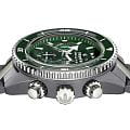 Мужские механические часы с автоподзаводом Rado Captain Cook — это вершина инженерной мысли и инноваций в материаловедении. Корпус диаметром 43 мм и толщиной 16,2 мм выполнен из цельного блока высокотехнологичной плазменной керамикиВысокотехнологичная плазменная керамикаИнновационный материал, технология запатентована. Выплавление керамики осуществляется в печи при 20 000 °C, белоснежный материал под воздействием ультравысокой температуры приобретает уникальный блеск, присущий металлам., созданной в экстремальных условиях — при температуре 20 000 °C, что изменило её молекулярную структуру и придало уникальное металлическое покрытие. БезельБезельВнешний ободок, закрепляющий стекло. В спортивных часах так называется поворотное кольцо с делениями на циферблате, выполняет роль таймера – замеряет отрезки времени на шкале. Неподвижный безель – элемент декора. Однонаправленно вращающийся безель на дайверских часах позволяет фиксировать моменты погружения и выныривания на поверхность. — вращающийся, стальной, с инкрустированным кольцом из зелёной керамики и метками с белым люминесцентным покрытиемЛюминесцентное покрытиеПозволяет считывать показания времени в темноте. Производители наносят на стрелки, часовые индексы, безель или поверхность циферблата светонакопительный состав, дающий холодное свечение. Super-Luminova®. Циферблат зелёного цвета оформлен тремя субциферблатами: 12-часовой, 30-минутный и малые секунды. Окошко даты расположено в положении 6 часов. Циферблат защищён сапфировым стекломСапфировое стеклоПрочный и надёжный материал из кристалла сапфира синтетического происхождения, характеризующийся особой твёрдостью и устойчивостью к царапинам и повреждениям. с антибликовым покрытиемАнтибликовое покрытиеСлой оксида металла в 0,13-0,3 микрон, благодаря которому стекло часов не бликует и не отражает свет. Антибликовое покрытие уменьшает отражение света в 10 раз, обеспечивая отличную читаемость показателей циферблата. с обеих сторон, устойчивым к царапинам. Механизм — автоматический хронограф с антимагнитной пружиной Nivachron™Nivachron™Специально разработанный инновационный сплав Nivachron™ повышает устойчивость часов к воздействию магнитных полей., отрегулированный в пяти положениях. В центре циферблата — подвижной якорь на рубиновой пластине. Часы оснащены браслетом из матовой и полированной высокотехнологичной плазменной керамикиВысокотехнологичная плазменная керамикаИнновационный материал, технология запатентована. Выплавление керамики осуществляется в печи при 20 000 °C, белоснежный материал под воздействием ультравысокой температуры приобретает уникальный блеск, присущий металлам. с трёхсекционной застёжкой из титана. Водонепроницаемость 300 м позволяет использовать часы для профессионального плавания и дайвинга. Идеальный выбор для тех, кто ценит передовые технологии, точность и смелый дизайн.