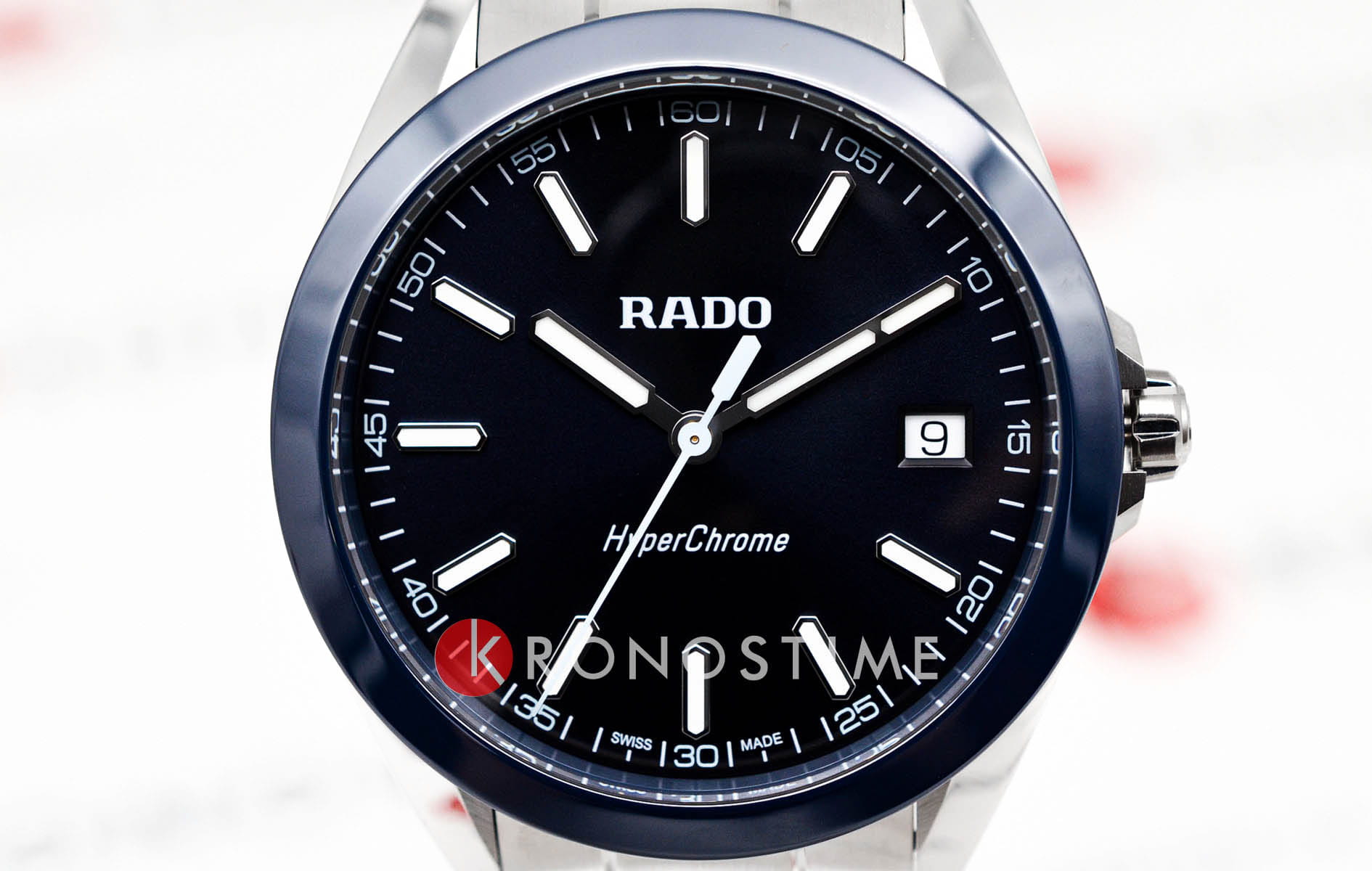 Мужские кварцевые часы Rado HyperChrome — это современное воплощение точности и мастерства материалов. Корпус диаметром 41,5 мм и толщиной 11,7 мм выполнен из полированной и матовой нержавеющей стали. БезельБезельВнешний ободок, закрепляющий стекло. В спортивных часах так называется поворотное кольцо с делениями на циферблате, выполняет роль таймера – замеряет отрезки времени на шкале. Неподвижный безель – элемент декора. Однонаправленно вращающийся безель на дайверских часах позволяет фиксировать моменты погружения и выныривания на поверхность. изготовлен из высокотехнологичной керамикиВысокотехнологичная керамикаИнновационный запатентованный Rado материал с гладкой или матовой поверхностью. Керамика за счёт кристаллической структуры обладает повышенной устойчивостью от возникновения царапин. Материал способен принимать температуру тела человека, обеспечивая невероятный комфорт при ношении. синего цвета, придающей часам прочность и изысканность. Циферблат синего цвета с лакированным покрытием оформлен индексами и стрелками с люминесцентным покрытиемЛюминесцентное покрытиеПозволяет считывать показания времени в темноте. Производители наносят на стрелки, часовые индексы, безель или поверхность циферблата светонакопительный состав, дающий холодное свечение. Super-Luminova®. Особенность подсветки — зелёное свечение метки 12 часов и минутной стрелки, и синее — остальных индексов и часовой стрелки, что обеспечивает интуитивное считывание времени в темноте. Циферблат защищён выпуклым сапфировым стекломСапфировое стеклоПрочный и надёжный материал из кристалла сапфира синтетического происхождения, характеризующийся особой твёрдостью и устойчивостью к царапинам и повреждениям. с антибликовым покрытиемАнтибликовое покрытиеСлой оксида металла в 0,13-0,3 микрон, благодаря которому стекло часов не бликует и не отражает свет. Антибликовое покрытие уменьшает отражение света в 10 раз, обеспечивая отличную читаемость показателей циферблата. на внутренней стороне. Механизм — кварцевый. Окошко даты расположено в положении 3 часов. Часы оснащены трёхрядным стальным браслетом с центральными звеньями и трёхсекционной застёжкой с системой быстрой регулировки. Водонепроницаемость 150 м позволяет использовать часы для плавания и повседневного ношения. Идеальный выбор для тех, кто ценит инновации, точность и смелый дизайн.