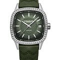 Часы Raymond Weil Freelancer Ladies Automatic 2490-SCS-52051 — это изысканный женский аксессуар, объединяющий утончённый стиль и швейцарское качество. Корпус диаметром 34,5 мм выполнен из нержавеющей стали и украшен 60 лабораторно выращенными бриллиантами общей массой 0,399 карата, что придаёт часам особую роскошь. Градиентный зелёный циферблат с фирменным гильоше в форме буквы "W" защищён сапфировым стекломСапфировое стеклоПрочный и надёжный материал из кристалла сапфира синтетического происхождения, характеризующийся особой твёрдостью и устойчивостью к царапинам и повреждениям. с антибликовым покрытиемАнтибликовое покрытиеСлой оксида металла в 0,13-0,3 микрон, благодаря которому стекло часов не бликует и не отражает свет. Антибликовое покрытие уменьшает отражение света в 10 раз, обеспечивая отличную читаемость показателей циферблата., устойчивым к царапинам и бликам.