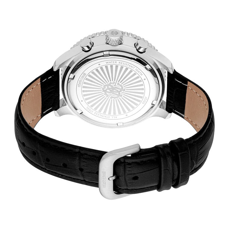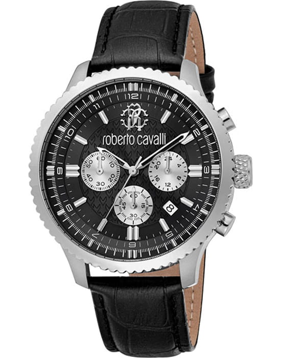 Roberto Cavalli Stile RC5G127L0025 — мужская кварцевая модель с ярко выраженным спортивным характером, сочетающая функциональность и надёжность. Корпус диаметром 44 мм выполнен из нержавеющей стали, сочетание матовых и полированных поверхностей придаёт часам современный вид. Защитную роль выполняет прочное минеральное стеклоМинеральное стеклоМинеральное стекло представляет собой искусственно выращенный минерал кварца. Такое стекло отличается особой устойчивостью к повреждениям и царапинам. Уступает по некоторым качествам сапфировому стеклу., устойчивое к повседневным воздействиям. Водозащита 100 м позволяет без опасений использовать модель во время плавания и активного отдыха. На циферблате реализованы функции хронографаХронографФункция позволяет измерять отрезки времени с особой точностью: часы, минуты, секунды. Верным признаком хронографа является наличие на циферблате 3 дополнительных окошек-счётчиков. и даты, благодаря чему часы сочетают спортивную эстетику и практичность. Кожаный ремешок шириной 20 мм подчеркивает классический стиль, обеспечивает удобство в ношении и гармонично завершает дизайн, делая модель универсальным спутником как для повседневного образа, так и для активного досуга.
