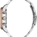 Мужские кварцевые часы Santa Barbara Polo & Racquet Club — это стильный и функциональный аксессуар для уверенного в себе мужчины. Корпус диаметром 43 мм и высотой 51,5 мм выполнен из нержавеющей стали, безель с IP-покрытиемIP-покрытиеМетод ионного напыления. Демонстрирует повышенную устойчивость к истиранию, окислению и химическим веществам. Под воздействием высокого давления и температуры около 1500°C молекулы металла надёжно соединяются с частицами корпуса часов. розового золота. Циферблат коричневого цвета оформлен по технологии Sunray («солнечные лучи»), дополнен накладными метками в виде штрихов и фирменным логотипом. Указатели дня недели и даты вынесены на отдельные субциферблаты, также присутствует индикация 24-часового формата времени. Стрелки с люминесцентным покрытиемЛюминесцентное покрытиеПозволяет считывать показания времени в темноте. Производители наносят на стрелки, часовые индексы, безель или поверхность циферблата светонакопительный состав, дающий холодное свечение., обеспечивающим хорошую читаемость в темноте. Циферблат защищён минеральным стекломМинеральное стеклоМинеральное стекло представляет собой искусственно выращенный минерал кварца. Такое стекло отличается особой устойчивостью к повреждениям и царапинам. Уступает по некоторым качествам сапфировому стеклу.. Механизм — кварцевый. Часы оснащены стальным браслетом с раскладной застёжкойРаскладная застёжкаТакой тип застёжки используется только на браслетах из металла. Она никогда не раскрывается полностью, происходит разделение на 2 и более частей. Раскладывающая застёжка снизит вероятность потери часов к минимуму.. Водонепроницаемость 50 м позволяет использовать часы в повседневных условиях. Идеальный выбор для тех, кто ценит стиль, точность и надёжность.