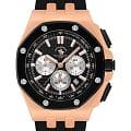 Мужские кварцевые часы-хронографХронографФункция позволяет измерять отрезки времени с особой точностью: часы, минуты, секунды. Верным признаком хронографа является наличие на циферблате 3 дополнительных окошек-счётчиков. с секундомеромСекундомерСекундоме́р — прибор, способный измерять интервалы времени с точностью до долей секунды. Santa Barbara Polo & Racquet Club SB.1.10601-5 — воплощение элегантности и технического совершенства. Корпус из нержавеющей стали с IP-покрытиемIP-покрытиеМетод ионного напыления. Демонстрирует повышенную устойчивость к истиранию, окислению и химическим веществам. Под воздействием высокого давления и температуры около 1500°C молекулы металла надёжно соединяются с частицами корпуса часов. цвета розового золота, диаметром 44,5 мм, что делает их устойчивыми к внешним воздействиям и придает благородный вид. Стрелки и метки с люминесцентным покрытиемЛюминесцентное покрытиеПозволяет считывать показания времени в темноте. Производители наносят на стрелки, часовые индексы, безель или поверхность циферблата светонакопительный состав, дающий холодное свечение., обеспечивающим хорошую читаемость в темноте. Неподвижный безельБезельВнешний ободок, закрепляющий стекло. В спортивных часах так называется поворотное кольцо с делениями на циферблате, выполняет роль таймера – замеряет отрезки времени на шкале. Неподвижный безель – элемент декора. Однонаправленно вращающийся безель на дайверских часах позволяет фиксировать моменты погружения и выныривания на поверхность. с IP-покрытиемIP-покрытиеМетод ионного напыления. Демонстрирует повышенную устойчивость к истиранию, окислению и химическим веществам. Под воздействием высокого давления и температуры около 1500°C молекулы металла надёжно соединяются с частицами корпуса часов. черного цвета. Циферблат защищён минеральным стекломМинеральное стеклоМинеральное стекло представляет собой искусственно выращенный минерал кварца. Такое стекло отличается особой устойчивостью к повреждениям и царапинам. Уступает по некоторым качествам сапфировому стеклу. устойчивое к царапинам и механическим повреждениям. Окошко даты находится в положении между отметками 4 и 5 часов, тахиметрТахиметрРазмеченная шкала, располагается на ободке или безеле часов. Тахиметр позволяет рассчитать скорость на определённом участке пути, расстояние измеряется в километрах или милях. по внешнему краю. Силиконовый ремешок на стандартной застёжке обеспечивает комфортное и безопасное ношение. Водонепроницаемость 50 метров позволит защитить корпус от случайных брызг или капель дождя. Идеальный выбор для тех, кто ценит элегантный дизайн и качество.