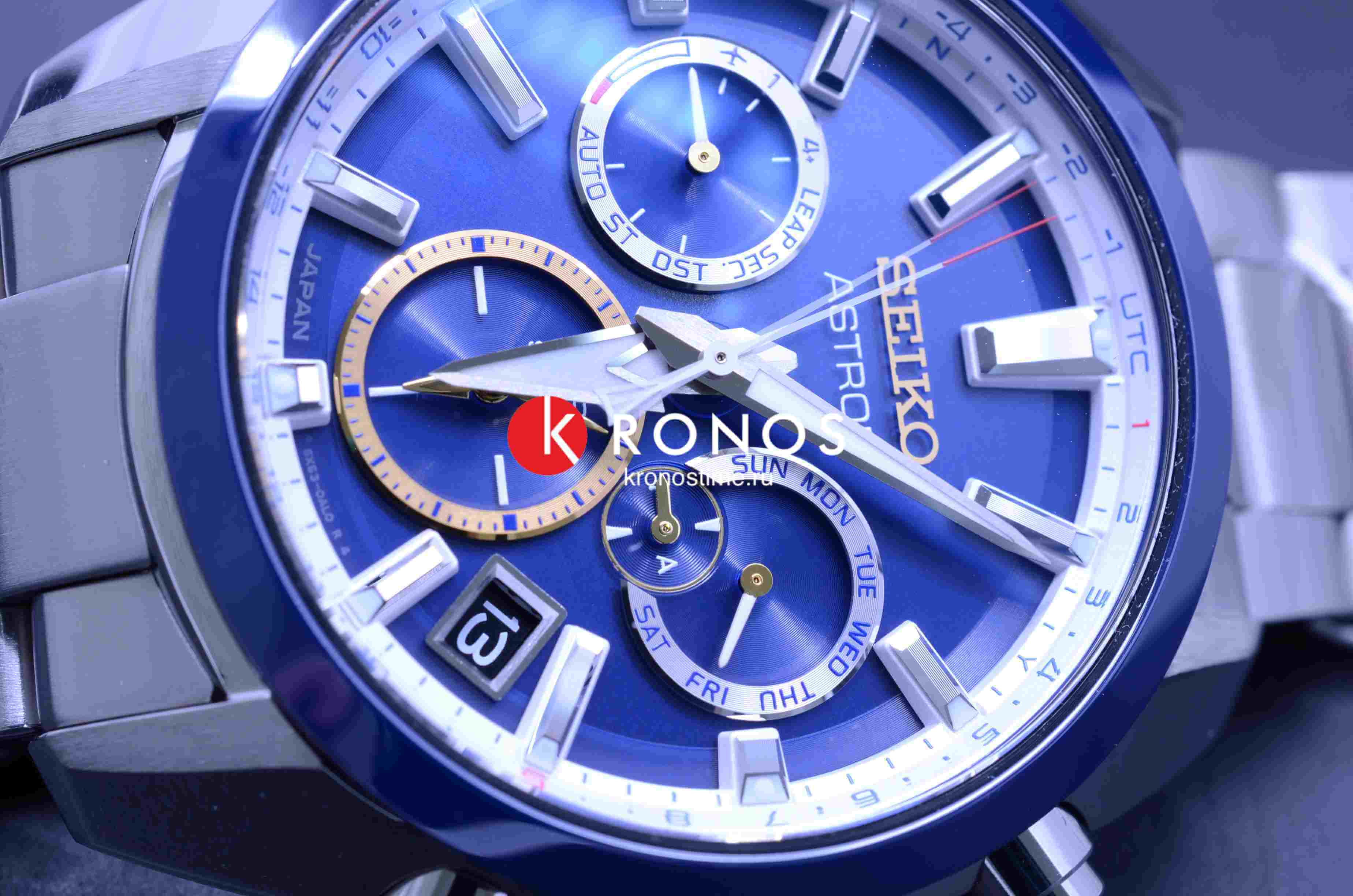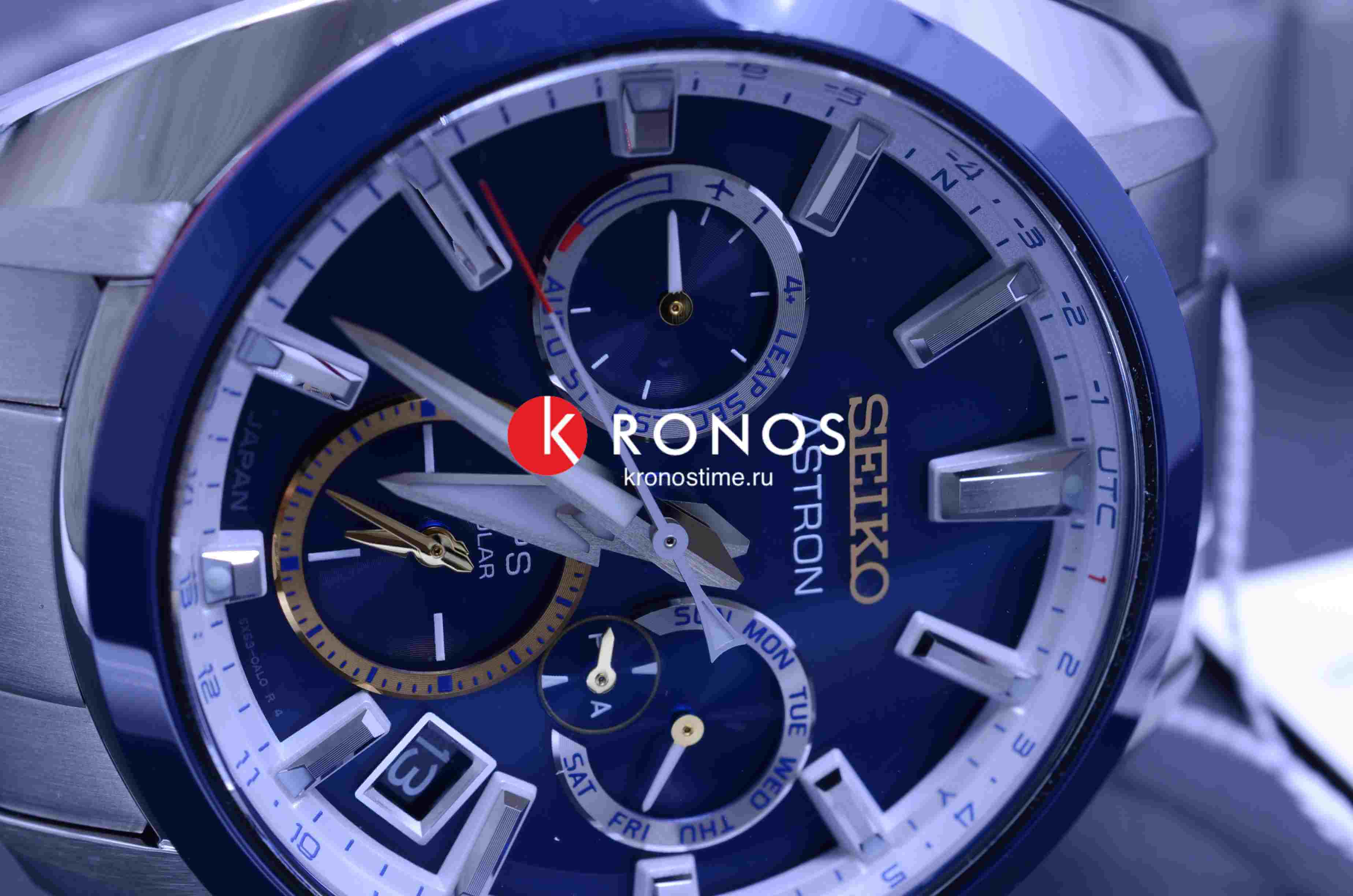 -приёмником, позволяющим определять и автоматически корректировать часовой пояс, дату, точное время. Модель  получает энергию от солнечной панели, обеспечивая автономную работу часов. Японский кварцевый калибр  Seiko 5X53 с точностью хода +/-15 секунд в месяц. Стекло из сапфира. Люминесцентная подсветкаЛюминесцентное покрытиеПозволяет считывать показания времени в темноте. Производители наносят на стрелки, часовые индексы, безель или поверхность циферблата светонакопительный состав, дающий холодное свечение. Lumibrite. Водостойкость 10 бар. Дополнительный силиконовый ремешок в комплекте. Задняя крышка с гравировкой. Функция энергосбережения. Вечный календарьВечный календарьКлассическое часовое усложнение, представляющее собой календарь, рассчитанный на несколько лет вперёд (стандартно – до 2099 года). Определяет текущую дату, день недели, месяц. рассчитан до 28 февраля 2100 года. Мировое времяМировое время Полезное часовое усложнение, отображающее время в основных городах и известных областях по всему миру, оно связано с часовыми поясами, удобно для путешественников и бизнесменов. . Диаметр корпуса: 42,7 мм.
