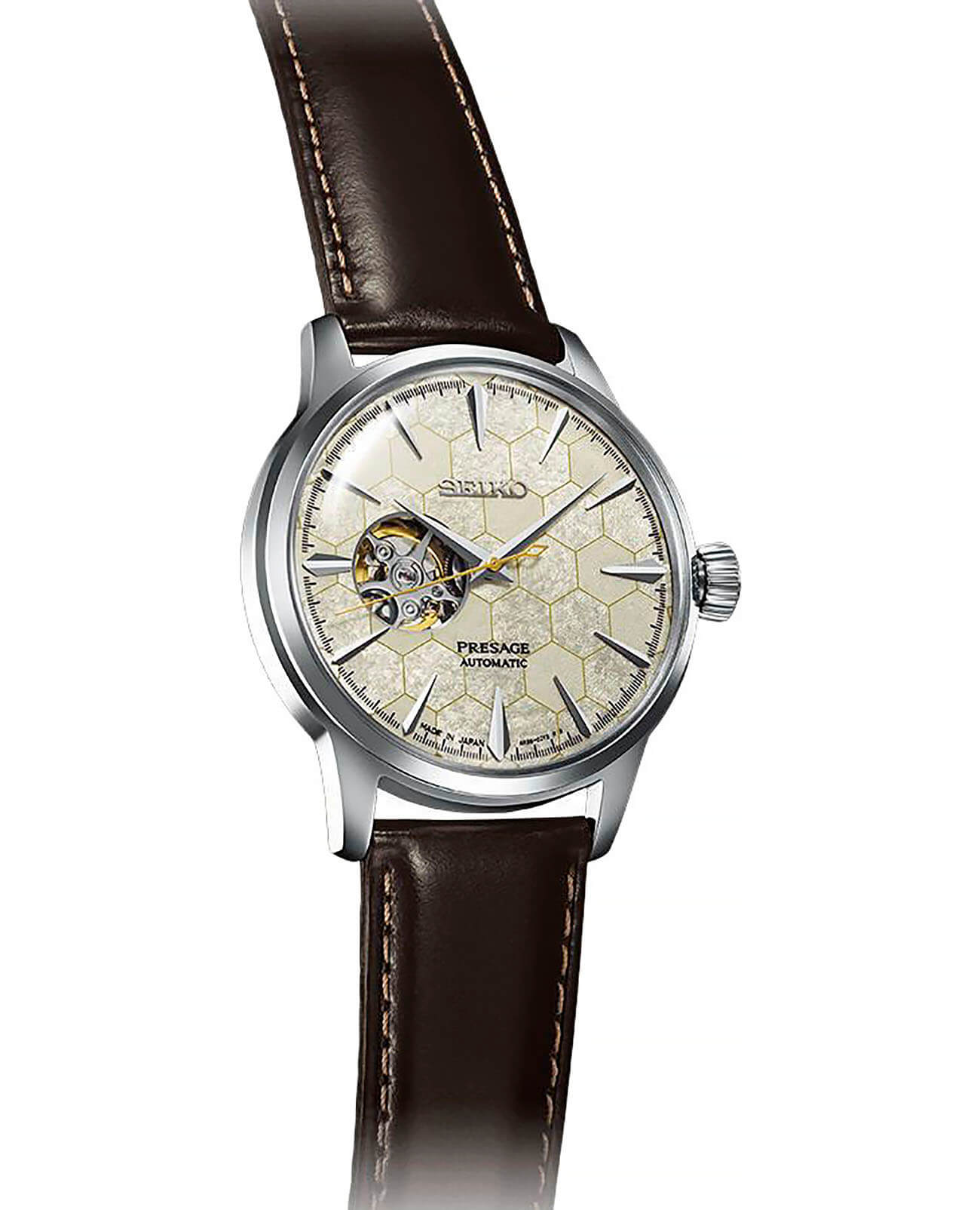 Модель выпускается ограниченным тиражом, всего существует 6000 экземпляров. Циферблат привлекает лаконичным узором, крупная индикация времени обеспечивает идеальную читаемость данных. На позиции 9 часов размещено круглое окошко, позволяющее прикоснуться к миру часового искусства. Это часы с автоподзаводом, работа японского автоматического механизма Seiko 4R38 просматривается сквозь завинчивающуюся прозрачную заднюю крышку. Запас хода – 40 часов, функция «stop-second» позволяет остановить часовой механизм для настройки времени с точностью до секунды. Ремешок выполнен из натуральной кожи. Циферблат защищён ультрапрочным минеральным стеклом Hardlex. Диаметр корпуса: 40,5 мм.