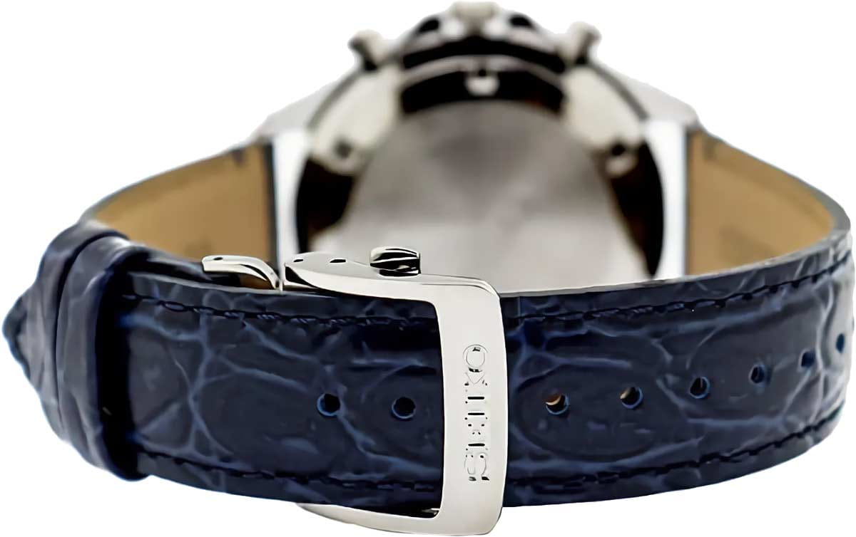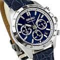 Мужские кварцевые часы-хронограф Seiko из коллекции Spirit — это надёжный и функциональный аксессуар. Корпус диаметром 42 мм выполнен из нержавеющей стали. Циферблат синего цвета выполнен по технологии Sunray («солнечные лучи») и оформлен штрихами. Присутствуют три субциферблата хронографа. Окошко даты расположено между 4 и 5 часами. На циферблате присутствует шкала тахиметраТахиметрРазмеченная шкала, располагается на ободке или безеле часов. Тахиметр позволяет рассчитать скорость на определённом участке пути, расстояние измеряется в километрах или милях.. Стрелки и метки с люминесцентным покрытиемЛюминесцентное покрытиеПозволяет считывать показания времени в темноте. Производители наносят на стрелки, часовые индексы, безель или поверхность циферблата светонакопительный состав, дающий холодное свечение. LumiBrite, обеспечивающим хорошую читаемость в темноте. Циферблат защищён прочным закалённым минеральным стеклом Hardlex. Механизм — японское кварцевое движение калибра 8T63 с функциями хронографаХронографФункция позволяет измерять отрезки времени с особой точностью: часы, минуты, секунды. Верным признаком хронографа является наличие на циферблате 3 дополнительных окошек-счётчиков. и секундомераСекундомерСекундоме́р — прибор, способный измерять интервалы времени с точностью до долей секунды. (точность 1/5 сек., время измерения до 1 часа). Заводная головка с защитой обеспечивает повышенную надёжность. Часы оснащены синим кожаным ремешком на раскладной застёжкеРаскладная застёжкаТакой тип застёжки используется только на браслетах из металла. Она никогда не раскрывается полностью, происходит разделение на 2 и более частей. Раскладывающая застёжка снизит вероятность потери часов к минимуму.. Водонепроницаемость 100 м позволяет использовать часы для плавания и повседневного ношения. Идеальный выбор для тех, кто ценит японское качество и универсальный дизайн.