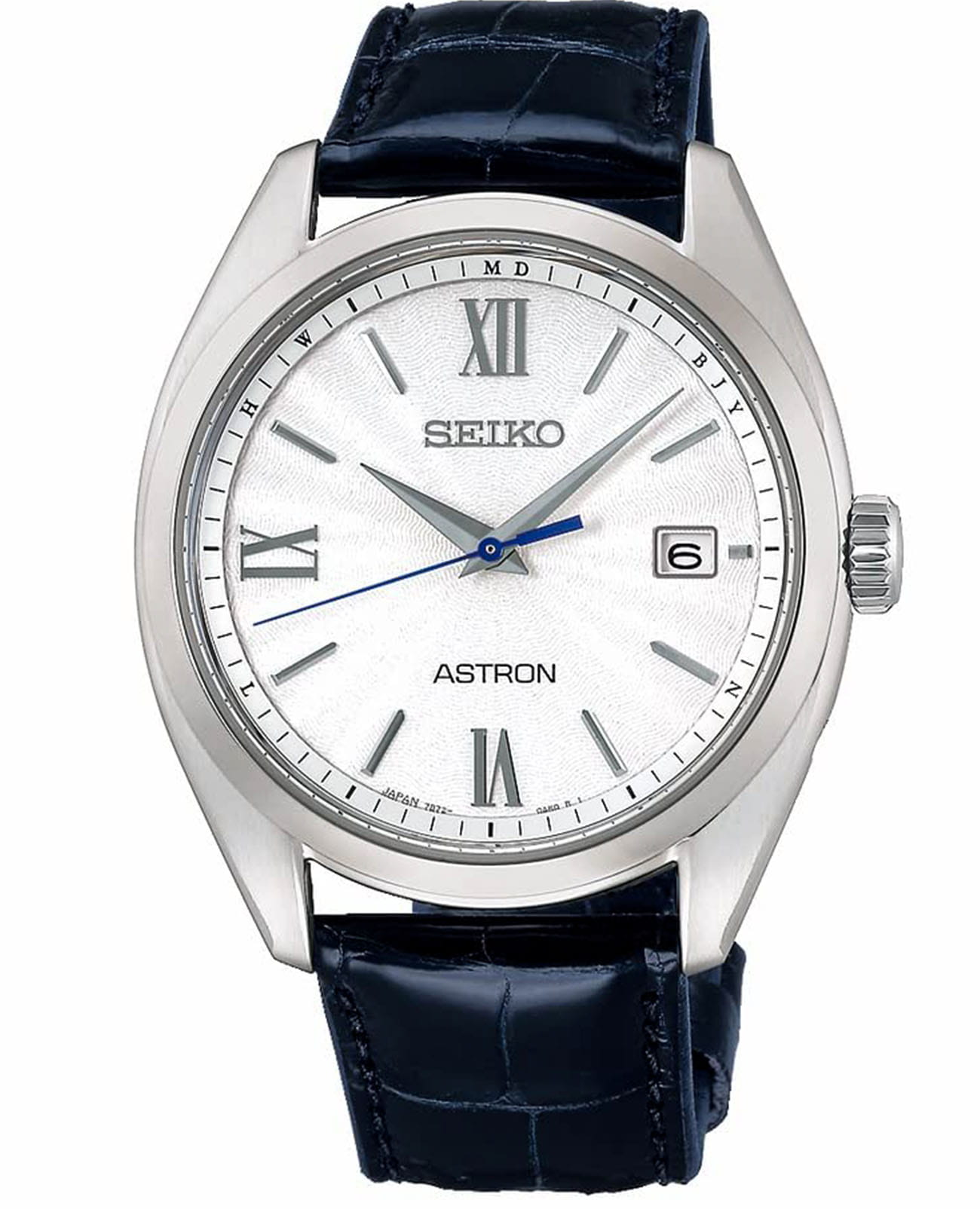 Мужские кварцевые часы Seiko — это высокотехнологичный аксессуар с солнечным питанием и радиосинхронизацией. Корпус размером 39 мм и толщиной 9,6 мм выполнен из гипоаллергенного титана. Циферблат белого цвета оформлен индексами и стрелками. Окошко даты расположено в положении 3 часов. Циферблат защищён сапфировым стекломСапфировое стеклоПрочный и надёжный материал из кристалла сапфира синтетического происхождения, характеризующийся особой твёрдостью и устойчивостью к царапинам и повреждениям. с антибликовым покрытиемАнтибликовое покрытиеСлой оксида металла в 0,13-0,3 микрон, благодаря которому стекло часов не бликует и не отражает свет. Антибликовое покрытие уменьшает отражение света в 10 раз, обеспечивая отличную читаемость показателей циферблата. для максимальной прозрачности. Механизм — кварцевый с технологией Tough SolarTough SolarТехнология основана на подзарядке аккумулятора от источника солнечного света, специальная панель улавливает солнечные лучи и преобразует их в энергию для работы часов. Достаточно пары минут нахождения на солнце для функционирования часов в течении суток., обеспечивающей работу до 9 месяцев в обычном режиме и до 2 лет в режиме энергосбережения. Часы поддерживают автоматическую радиокоррекцию времени, имеют функцию вечного календаряВечный календарьКлассическое часовое усложнение, представляющее собой календарь, рассчитанный на несколько лет вперёд (стандартно – до 2099 года). Определяет текущую дату, день недели, месяц. (до 2100 года) и устойчивы к магнитным полям. Часы оснащены черным кожаным ремешком с раскладной застёжкойРаскладная застёжкаТакой тип застёжки используется только на браслетах из металла. Она никогда не раскрывается полностью, происходит разделение на 2 и более частей. Раскладывающая застёжка снизит вероятность потери часов к минимуму.. Водонепроницаемость 100 м позволяет использовать часы для плавания и повседневного ношения. Идеальный выбор для тех, кто ценит точность, лёгкость и передовые технологии.