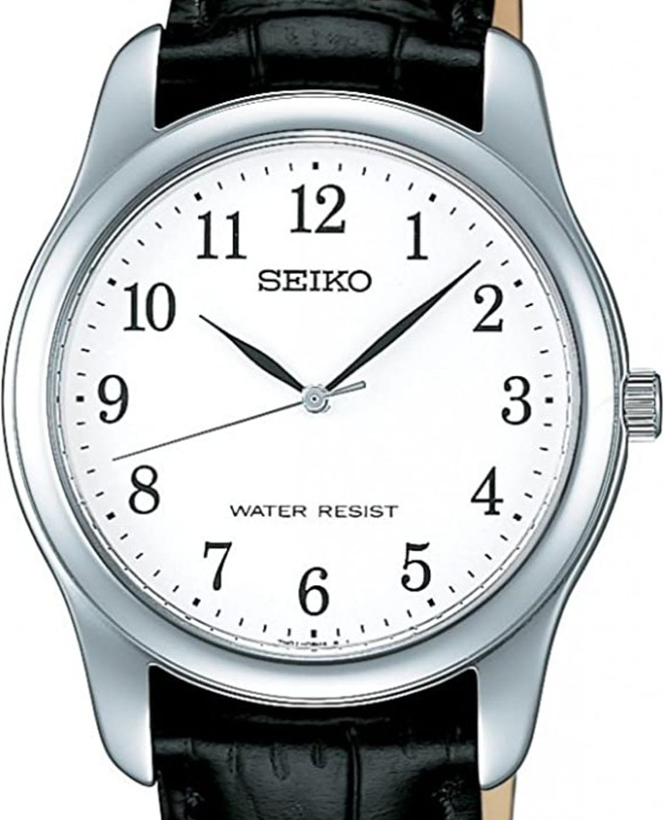 Мужские кварцевые часы Seiko из коллекции Spirit — это надёжный и универсальный аксессуар. Корпус диаметром 35 мм выполнен из нержавеющей стали. Циферблат белого цвета оформлен индексами и стрелками, включая центральную секундную стрелку. Циферблат защищён прочным закалённым минеральным стеклом Hardlex минеральным стекломМинеральное стеклоМинеральное стекло представляет собой искусственно выращенный минерал кварца. Такое стекло отличается особой устойчивостью к повреждениям и царапинам. Уступает по некоторым качествам сапфировому стеклу.. Механизм — калибр 7N01 с высокой точностью хода (±10–15 сек. в месяц). Часы оснащены чёрным кожаным ремешком на классической пряжке. Водонепроницаемость 30 м позволяет использовать часы в повседневных условиях. Идеальный выбор для тех, кто ценит японское качество и классический дизайн.