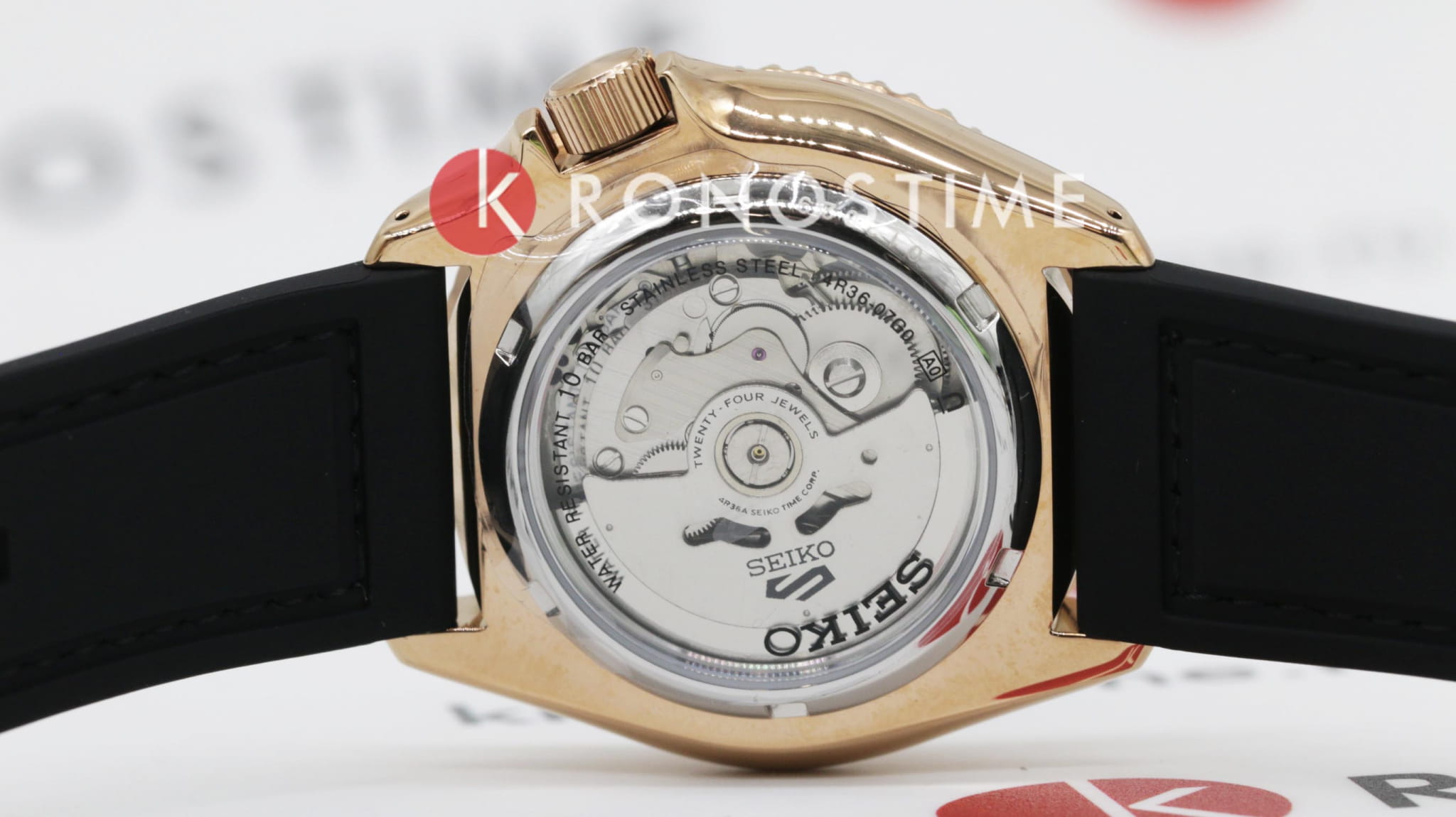 Часы Seiko 5 Sports SRPD76K1 сочетают в себе элегантный дизайн и надёжность, характерные для японского часового мастерства. Корпус диаметром 42,5 мм выполнен из нержавеющей стали с PVD-покрытиемPVDУльтратонкое покрытие наносится в технике вакуумного напыления, сочетает в себе нитрид титана особой прочности со слоем золота или оксида хрома. Несёт в себе декоративную или защитную функцию. розового золота, придающим часам утончённый вид. Чёрный циферблат защищён минеральным стекломМинеральное стеклоМинеральное стекло представляет собой искусственно выращенный минерал кварца. Такое стекло отличается особой устойчивостью к повреждениям и царапинам. Уступает по некоторым качествам сапфировому стеклу. с повышенной прочностью. ​​