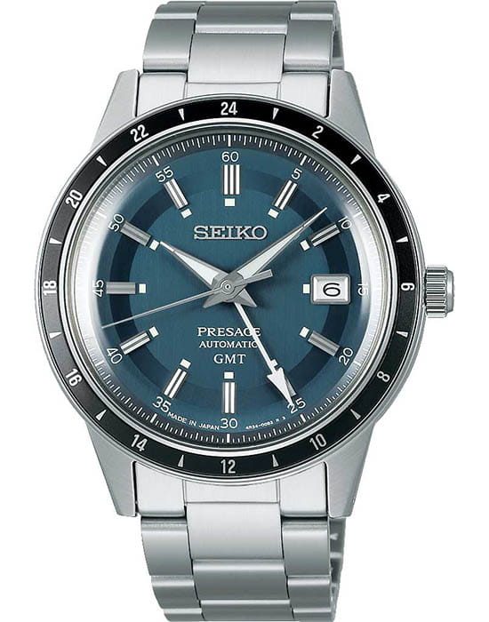 Seiko Presage Style60’s SSK009J1 — гармоничное сочетание винтажной эстетики 60-х годов и современных механических технологий, воплощённое в изысканной и универсальной форме. Корпус диаметром 39,5 мм выполнен из нержавеющей стали с сатинированной и полированной отделкой. Циферблат защищён изогнутым стеклом HardlexМинеральное стеклоМинеральное стекло представляет собой искусственно выращенный минерал кварца. Такое стекло отличается особой устойчивостью к повреждениям и царапинам. Уступает по некоторым качествам сапфировому стеклу., устойчивым к повседневным повреждениям. Циферблат оформлен в минималистичном стиле: накладные серебристые индексы и стрелки с люминесцентным покрытиемЛюминесцентное покрытиеПозволяет считывать показания времени в темноте. Производители наносят на стрелки, часовые индексы, безель или поверхность циферблата светонакопительный состав, дающий холодное свечение. обеспечивают хорошую читаемость. Окно даты расположено на позиции «3 часа». БезельБезельВнешний ободок, закрепляющий стекло. В спортивных часах так называется поворотное кольцо с делениями на циферблате, выполняет роль таймера – замеряет отрезки времени на шкале. Неподвижный безель – элемент декора. Однонаправленно вращающийся безель на дайверских часах позволяет фиксировать моменты погружения и выныривания на поверхность. с PVD-покрытиемPVDУльтратонкое покрытие наносится в технике вакуумного напыления, сочетает в себе нитрид титана особой прочности со слоем золота или оксида хрома. Несёт в себе декоративную или защитную функцию.. Внутри установлен автоматический механизм Seiko 4R34 с возможностью ручного подзавода. Механизм на 24 камнях работает с частотой 21 600 полуколебаний в час и обеспечивает запас хода около 41 часа. Модель оснащена браслетом из нержавеющей стали с раскладной застёжкойРаскладная застёжкаТакой тип застёжки используется только на браслетах из металла. Она никогда не раскрывается полностью, происходит разделение на 2 и более частей. Раскладывающая застёжка снизит вероятность потери часов к минимуму., обеспечивающей удобство и надёжность при повседневной носке. Водонепроницаемость 50 метров делает SSK009J1 отличным выбором для повседневного стиля и формальных образов. Presage Style60’s — это уважение к традициям и современный подход к классике японского часового искусства.