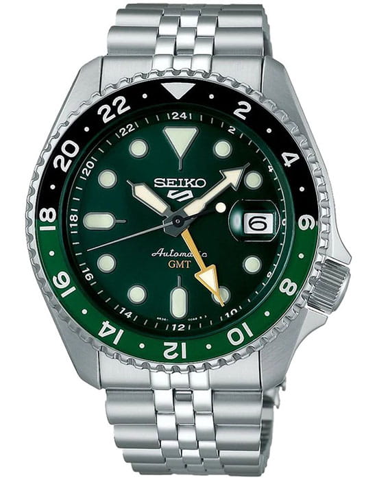 Часы Seiko 5 Sports SSK035K1 сочетают в себе элегантный дизайн и функциональность, характерные для японского часового мастерства. Корпус диаметром 42,5 мм выполнен из нержавеющей стали, а зелёный циферблат защищён минеральным стекломМинеральное стеклоМинеральное стекло представляет собой искусственно выращенный минерал кварца. Такое стекло отличается особой устойчивостью к повреждениям и царапинам. Уступает по некоторым качествам сапфировому стеклу. с увеличительной линзой над датой. ​​ Внутри часов установлен механический калибр 4R36 с автоподзаводом, обеспечивающий точность хода и запас хода до 41 часа. Функция GMTGMTОтображение времени второго часового пояса.Такая функция особенно актуальна для путешественников и бизнесменов,которые общаются с людьми из разных стран,теперь вы всегда будете знать,какой час у вашего партнёра или близкого человека. позволяет отслеживать время второго часового пояса, что особенно удобно для путешественников. Индикация даты расположена на отметке 3 часа, добавляя практичности в повседневном использовании. ​​ Водозащита 100 метров (10 бар) позволяет использовать часы для плавания и других водных видов спорта. Стальной браслет с раскладной застёжкойРаскладная застёжкаТакой тип застёжки используется только на браслетах из металла. Она никогда не раскрывается полностью, происходит разделение на 2 и более частей. Раскладывающая застёжка снизит вероятность потери часов к минимуму. обеспечивает комфортное ношение и надёжную фиксацию на запястье. ​​Эти часы идеально подойдут для тех, кто ценит сочетание стиля и функциональности в одном аксессуаре.