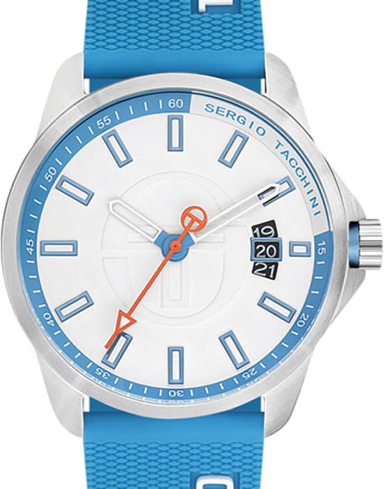 Sergio Tacchini ST.9.113.04 — спортивная мужская модель, воплощающая энергичный итальянский стиль бренда. Корпус из нержавеющей стали устойчив к случайным ударам и влаге, а эластичный каучуковый ремешок обеспечивает комфортную посадку на запястье даже при активном движении. Циферблат с крупными метками и секундной стрелкой ярко-оранжевого цвета создаёт динамичный акцент, усиливающий ощущение драйва. На отметке 6 часов расположен крупный двойной индикатор даты, повышающий читаемость. Циферблат защищён минеральным стекломМинеральное стеклоМинеральное стекло представляет собой искусственно выращенный минерал кварца. Такое стекло отличается особой устойчивостью к повреждениям и царапинам. Уступает по некоторым качествам сапфировому стеклу., устойчивым к царапинам и лёгким повреждениям. Водозащита уровня 50 м позволяет не снимать часы во время душа или дождя. Универсальный и выразительный аксессуар для повседневного ритма, сочетающий надёжность, удобство и фирменную итальянскую эстетику Sergio Tacchini.
