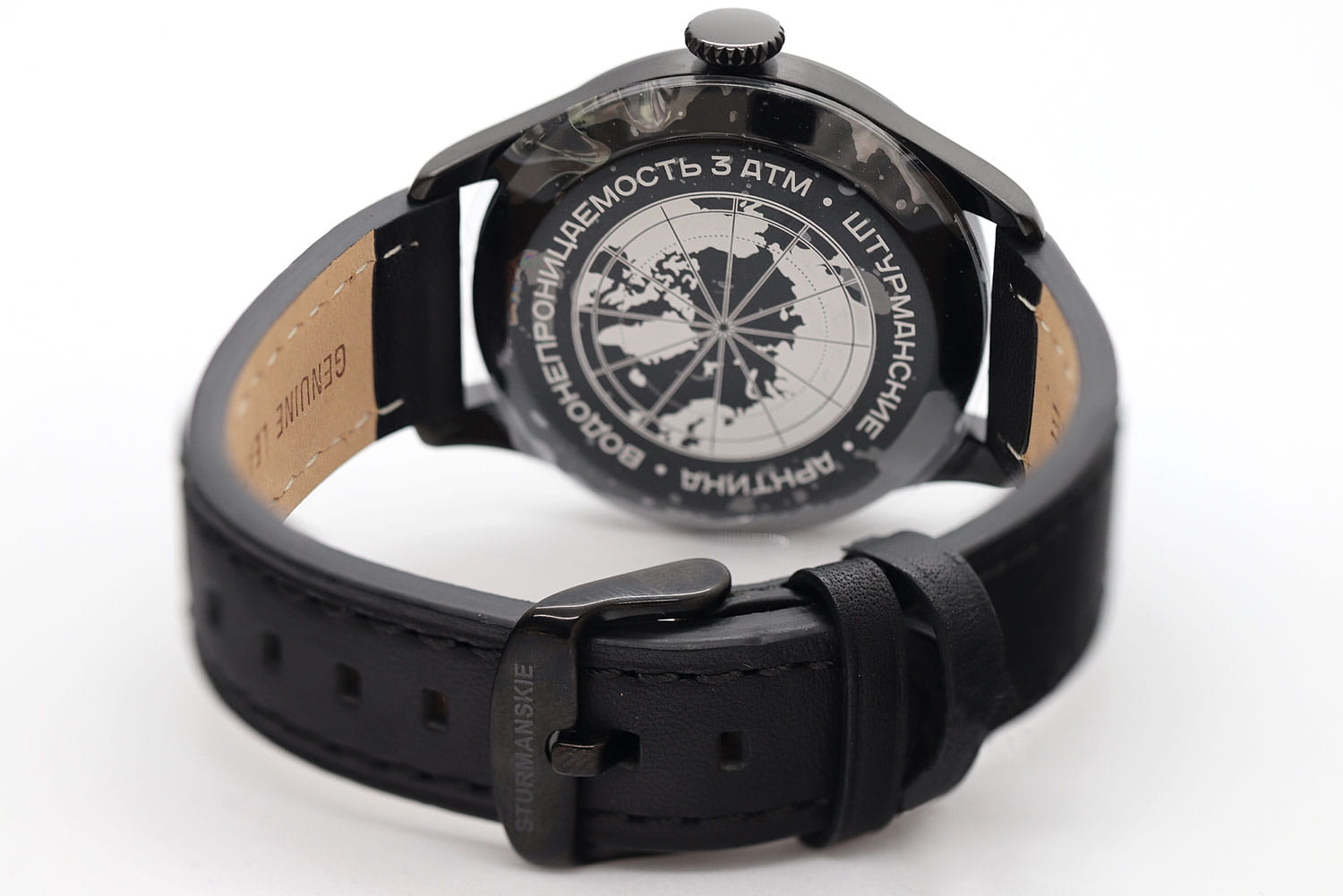 Штурманские мужские российские механические часы с механизмом высокой точности. Класс водозащиты: 30 метров, позволит защитить корпус от случайных брызг или капель дождя. Корпус часов изготовлен из стали с PVD-покрытиемPVDУльтратонкое покрытие наносится в технике вакуумного напыления, сочетает в себе нитрид титана особой прочности со слоем золота или оксида хрома. Несёт в себе декоративную или защитную функцию.. Кожаный ремешок на стандартной застёжке. Стрелки и метки с люминесцентным покрытиемЛюминесцентное покрытиеПозволяет считывать показания времени в темноте. Производители наносят на стрелки, часовые индексы, безель или поверхность циферблата светонакопительный состав, дающий холодное свечение.. Задняя крышка украшена картой Арктики.