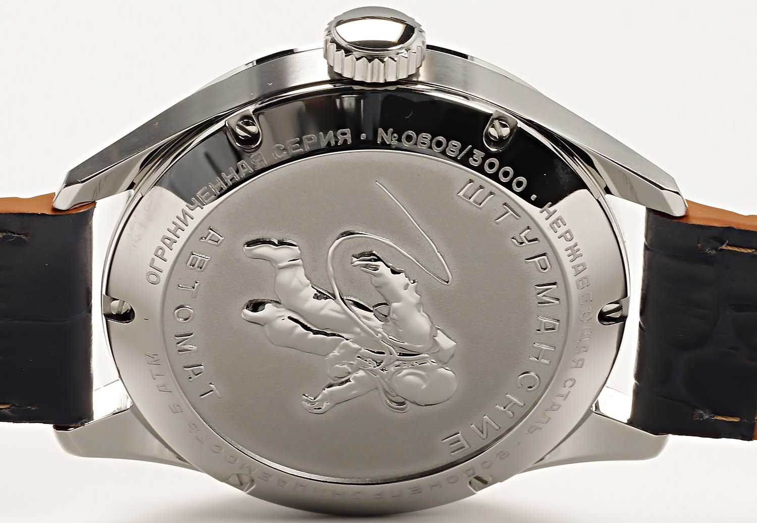 Мужские российские механические часы с минеральным стекломМинеральное стеклоМинеральное стекло представляет собой искусственно выращенный минерал кварца. Такое стекло отличается особой устойчивостью к повреждениям и царапинам. Уступает по некоторым качествам сапфировому стеклу. Штурманские Открытый Космос Day-Date Автомат NH36/1891772, механический механизм (автоматический калибр) с высокой точностью. Лимитированная серия - 3000 экземпляров. Класс водозащиты: 50 метров, позволит защитить корпус от случайных брызг или капель дождя. Корпус часов изготовлен из стали. Кожаный ремешок на стандартной застёжке. Окошки дня недели и даты находятся в положении 3 часа. Сзади украшены изображением астронавта в открытом космосе по мотивам картины Алексея Леонова. 12-ти и 24-х часовой формат времени. В механизме 24 камня, частота 21600 полуколебаний в час. Запас хода 41 час. Противоударное устройство оси баланса. Автоматический подзавод пружины. Накладные метки в виде штрихов сложной формы. Дата и день недели в накладной рамке с двойным окошком. Рифленая заводная головка. Индивидуальная нумерация.