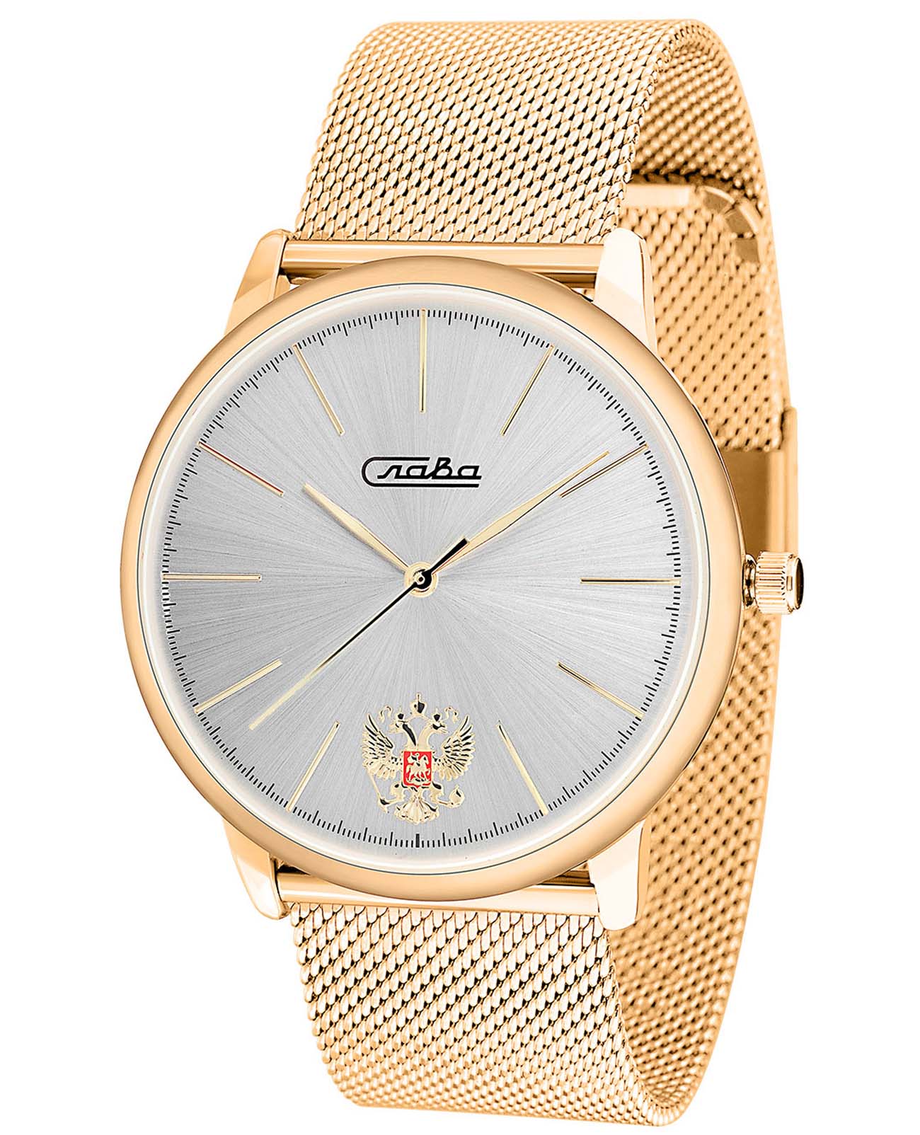 Российские часы Слава Традиция 1729983/2035-100 оснащены механизмом Miyota, что обеспечивает исключительную надежность и точность хода. Корпус часов выполнен из алюминиевого сплава с IP-покрытиемIP-покрытиеМетод ионного напыления. Демонстрирует повышенную устойчивость к истиранию, окислению и химическим веществам. Под воздействием высокого давления и температуры около 1500°C молекулы металла надёжно соединяются с частицами корпуса часов., что придает им долговечность и устойчивость к внешним воздействиям. Минеральное стеклоМинеральное стеклоМинеральное стекло представляет собой искусственно выращенный минерал кварца. Такое стекло отличается особой устойчивостью к повреждениям и царапинам. Уступает по некоторым качествам сапфировому стеклу. устойчиво к мелким механическим повреждениям, что гарантирует долговечность и сохранение первоначального вида.