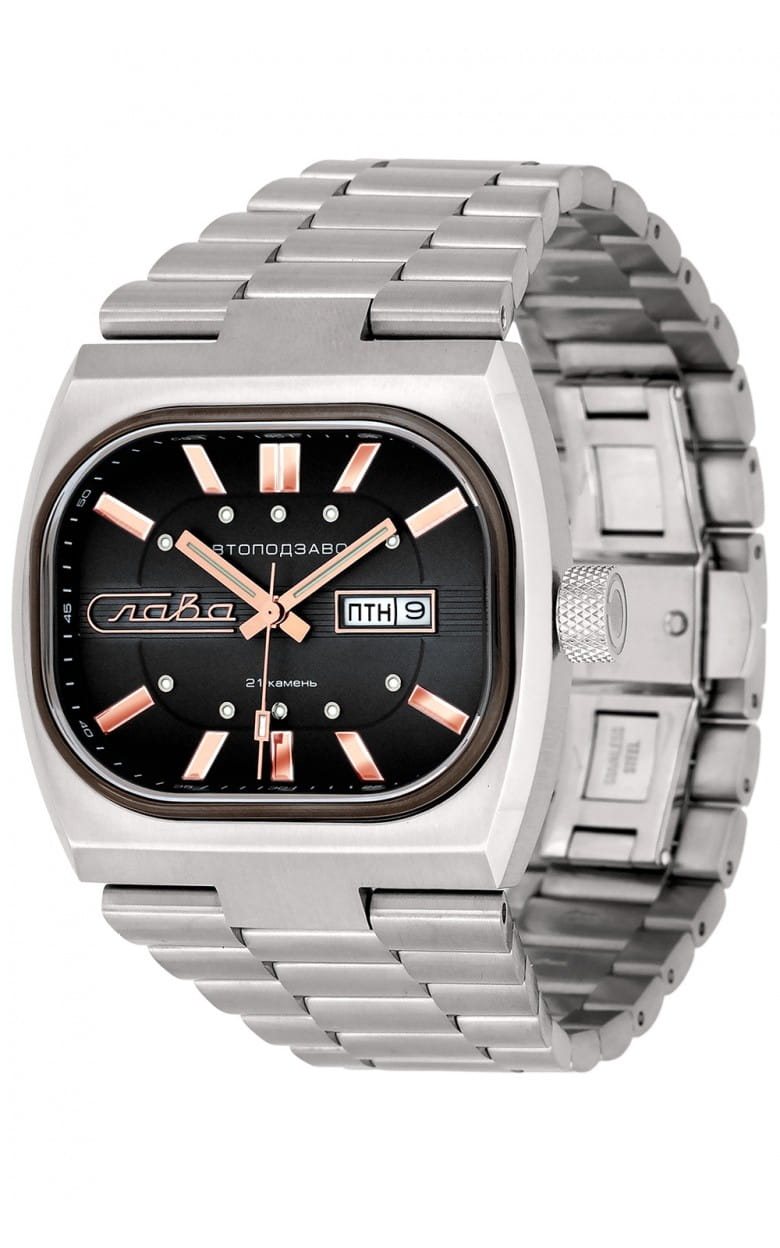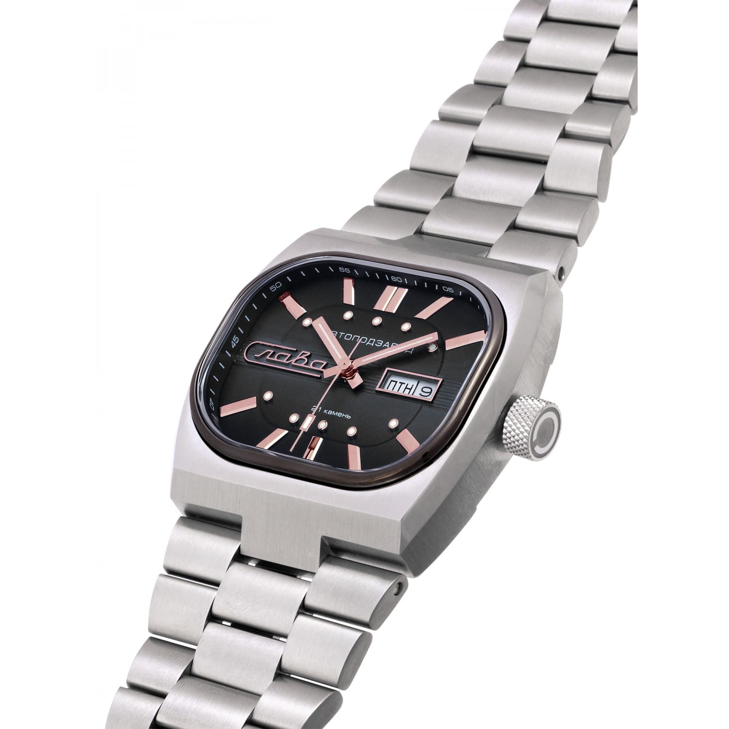 Российские часы Слава 3042706/100-8205 оснащены механизмом Miyota 8205, что обеспечивает исключительную надежность и точность хода. Корпус и браслет часов выполнены из стали, что придает им долговечность и устойчивость к внешним воздействиям. Сапфировое стеклоСапфировое стеклоПрочный и надёжный материал из кристалла сапфира синтетического происхождения, характеризующийся особой твёрдостью и устойчивостью к царапинам и повреждениям.. Класс водозащиты часов составляет 100 метров, позволит плавать, нырять и заниматься другими водными видами спорта. Эти часы идеально подойдут для повседневного использования, сочетая в себе стиль, надежность и функциональность. Стрелки и метки с люминесцентным покрытиемЛюминесцентное покрытиеПозволяет считывать показания времени в темноте. Производители наносят на стрелки, часовые индексы, безель или поверхность циферблата светонакопительный состав, дающий холодное свечение.. Окошки дня недели и даты находятся в положении 3 часа. Стальной браслет на раскладной застёжкеРаскладная застёжкаТакой тип застёжки используется только на браслетах из металла. Она никогда не раскрывается полностью, происходит разделение на 2 и более частей. Раскладывающая застёжка снизит вероятность потери часов к минимуму..