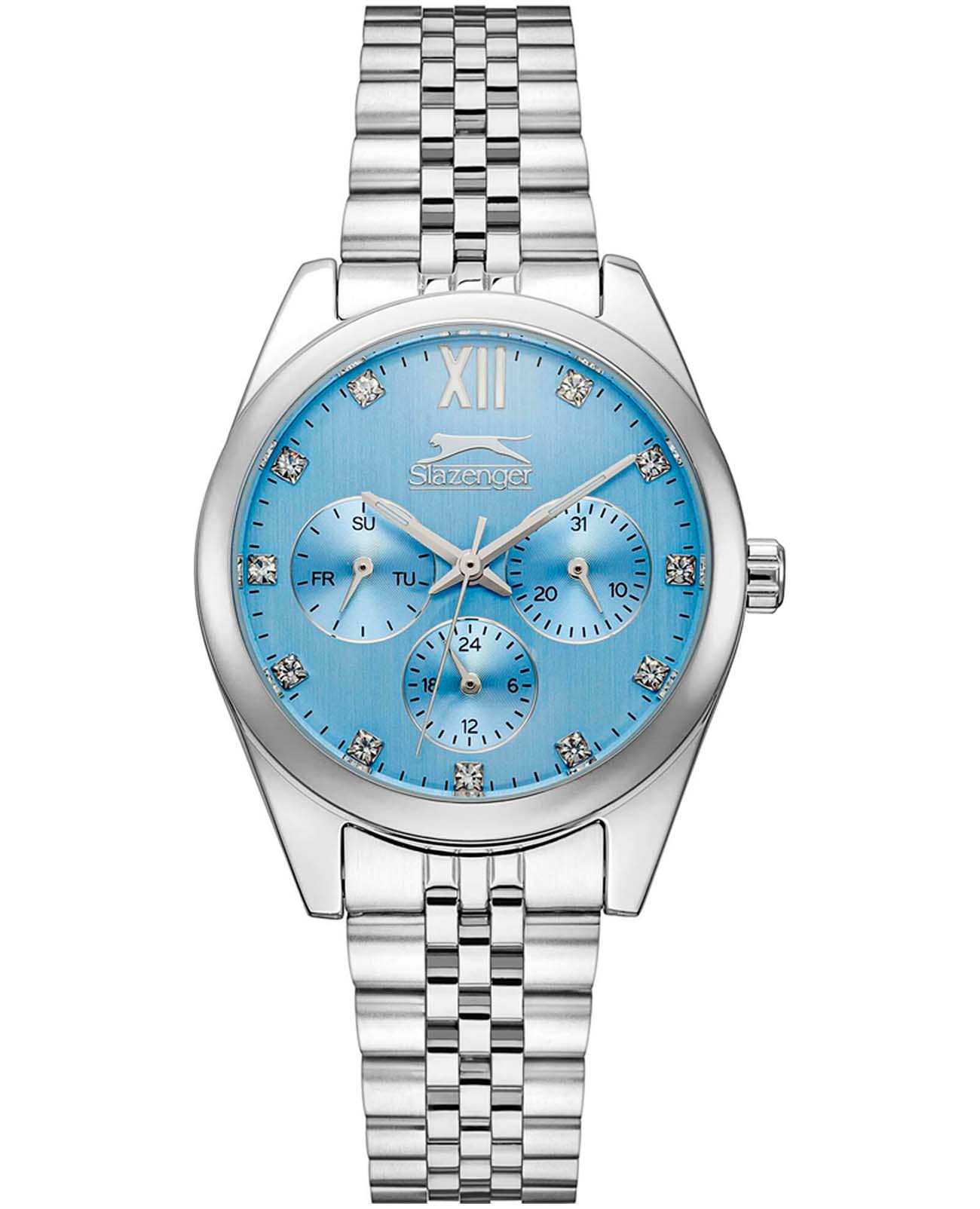 Женские наручные часы Slazenger SL.09.1990.4.06 сочетают в себе элегантный дизайн и практичность современных технологий. Модель обладает круглым корпусом диаметром 34 мм, изготовленным из суперметалла, что обеспечивает высокую устойчивость к внешним воздействиям. Браслет выполнен из того же материала на раскладной застёжкеРаскладная застёжкаТакой тип застёжки используется только на браслетах из металла. Она никогда не раскрывается полностью, происходит разделение на 2 и более частей. Раскладывающая застёжка снизит вероятность потери часов к минимуму., гарантирующей комфортное ношение. Циферблат оснащен индексами для лучшей читаемости времени и дополнен функцией отображения даты. Для защиты применяется минеральное стеклоМинеральное стеклоМинеральное стекло представляет собой искусственно выращенный минерал кварца. Такое стекло отличается особой устойчивостью к повреждениям и царапинам. Уступает по некоторым качествам сапфировому стеклу., обеспечивающее прочную защиту от царапин. Часы работают на японском кварцевом механизме, который питается от батарейки и гарантирует точное время без необходимости подзаводки. Водонепроницаемость составляет 3 атмосферы (30 метров), что позволяет использовать их в повседневной жизни, но не рекомендуется для плавания или занятий водными видами спорта.