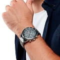 Мужские наручные часы Slazenger SL.09.2056.2.01 — это стильный и функциональный аксессуар, сочетающий в себе современный дизайн и надежность. Модель обладает круглым корпусом диаметром 48 мм, выполненным из металлического сплава. БезельБезельВнешний ободок, закрепляющий стекло. В спортивных часах так называется поворотное кольцо с делениями на циферблате, выполняет роль таймера – замеряет отрезки времени на шкале. Неподвижный безель – элемент декора. Однонаправленно вращающийся безель на дайверских часах позволяет фиксировать моменты погружения и выныривания на поверхность. с IP-покрытиемIP-покрытиеМетод ионного напыления. Демонстрирует повышенную устойчивость к истиранию, окислению и химическим веществам. Под воздействием высокого давления и температуры около 1500°C молекулы металла надёжно соединяются с частицами корпуса часов. обеспечивает устойчивость к царапинам и коррозии. Браслет изготовлен из суперметалла с раскладной застежкойРаскладная застёжкаТакой тип застёжки используется только на браслетах из металла. Она никогда не раскрывается полностью, происходит разделение на 2 и более частей. Раскладывающая застёжка снизит вероятность потери часов к минимуму., которая гарантирует удобство и надежность при ношении. Циферблат черного цвета украшен стрелками с люминесцентным покрытиемЛюминесцентное покрытиеПозволяет считывать показания времени в темноте. Производители наносят на стрелки, часовые индексы, безель или поверхность циферблата светонакопительный состав, дающий холодное свечение., что позволяет легко определять время даже в условиях слабого освещения. Для защиты циферблата используется минеральное стеклоМинеральное стеклоМинеральное стекло представляет собой искусственно выращенный минерал кварца. Такое стекло отличается особой устойчивостью к повреждениям и царапинам. Уступает по некоторым качествам сапфировому стеклу., устойчивое к царапинам и повреждениям. Часы оснащены кварцевым механизмом Miyota, обеспечивающим точность хода с погрешностью не более ±15 секунд в месяц. Модель также включает функции отображения даты, дня недели, 24-часового формата времени и второго часового поясаВторой часовой поясФункция, позволяющая отображать время двух часовых поясов одновременно., что делает их практичными для повседневного использования. Водонепроницаемость часов составляет 5 атмосфер (50 метров), что позволяет использовать их при плавании, но не рекомендуется для дайвинга. Вес модели — 148 грамм, что обеспечивает комфортное ношение. Производитель предоставляет гарантию сроком 12 месяцев. Slazenger SL.09.2056.2.01 — это универсальный аксессуар, который подчеркнет стиль и практичность в любом образе мужчины.