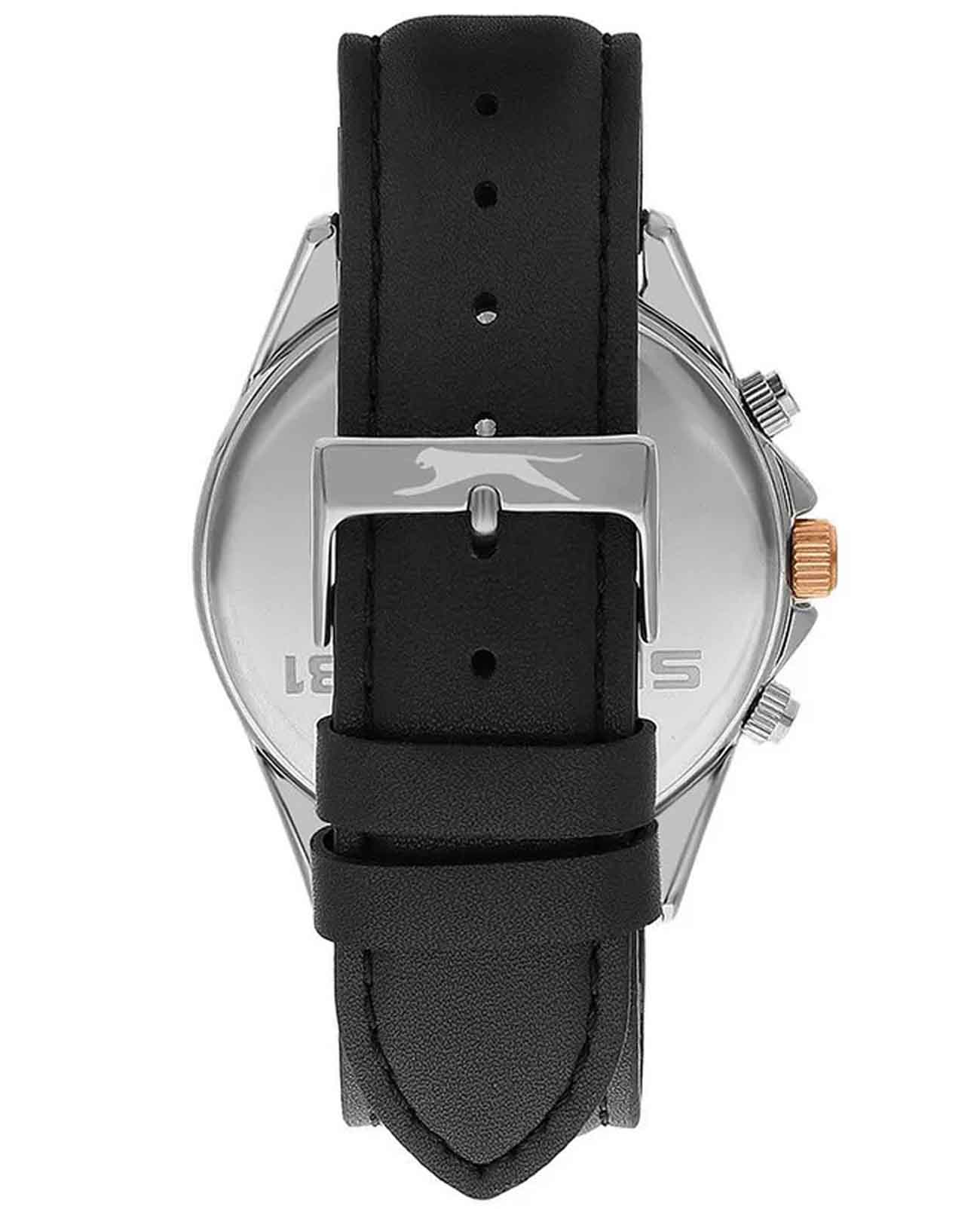Мужские наручные часы Slazenger SL.09.2067.2.01 сочетают в себе спортивный дизайн и высокое качество исполнения. Часы работают на японском кварцевом механизме, который обеспечивает точность хода без необходимости подзаводки. Модель обладает круглым корпусом диаметром 46 мм, изготовленным из суперметалла, что обеспечивает устойчивость к внешним воздействиям. Неподвижный безельБезельВнешний ободок, закрепляющий стекло. В спортивных часах так называется поворотное кольцо с делениями на циферблате, выполняет роль таймера – замеряет отрезки времени на шкале. Неподвижный безель – элемент декора. Однонаправленно вращающийся безель на дайверских часах позволяет фиксировать моменты погружения и выныривания на поверхность. из суперметалла с IP-покрытиемIP-покрытиеМетод ионного напыления. Демонстрирует повышенную устойчивость к истиранию, окислению и химическим веществам. Под воздействием высокого давления и температуры около 1500°C молекулы металла надёжно соединяются с частицами корпуса часов. черного цвета. Черный циферблат украшен логотипом бренда и метками времени. Имеются дополнительные малые циферблаты для отображения даты, дня недели и текущего времени в 24-часовом формате. Циферблат покрыт минеральным стекломМинеральное стеклоМинеральное стекло представляет собой искусственно выращенный минерал кварца. Такое стекло отличается особой устойчивостью к повреждениям и царапинам. Уступает по некоторым качествам сапфировому стеклу., обеспечивающим прочную защиту от царапин. Стрелки имеют люминесцентное покрытиеЛюминесцентное покрытиеПозволяет считывать показания времени в темноте. Производители наносят на стрелки, часовые индексы, безель или поверхность циферблата светонакопительный состав, дающий холодное свечение., что позволяет легко считывать время в темноте. Водонепроницаемость часов составляет 5 атмосфер (WR50), что позволяет защитить корпус от случайных брызг или капель дождя. Браслет из искусственной кожи на стандартной застежке.