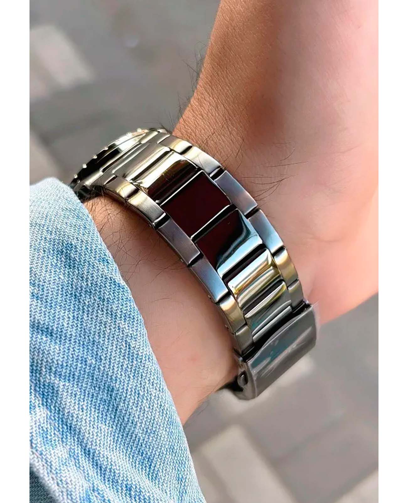 Мужские наручные часы Slazenger SL.09.2091.2.01 сочетают в себе классический дизайн и надежность современных технологий. Модель обладает круглым корпусом диаметром 44 мм, изготовленным из суперметалла, что обеспечивает высокую устойчивость к внешним воздействиям. Браслет выполнен из стали с раскладной застежкойРаскладной замокДанный вариант застежки используется только на часах с металлическим браслетом. Отличительная особенность такого крепления в том, что длина браслета становится универсальной и вы можете самостоятельно отрегулировать нужный вам размер – застежка просто двигается по браслету часов., гарантирующей комфортное ношение и безопасность. Циферблат черного цвета декорирован стрелками с люминесцентным покрытиемЛюминесцентное покрытиеПозволяет считывать показания времени в темноте. Производители наносят на стрелки, часовые индексы, безель или поверхность циферблата светонакопительный состав, дающий холодное свечение., которые обеспечивают читаемость времени даже при недостаточной освещенности. Для защиты используется минеральное стеклоМинеральное стеклоМинеральное стекло представляет собой искусственно выращенный минерал кварца. Такое стекло отличается особой устойчивостью к повреждениям и царапинам. Уступает по некоторым качествам сапфировому стеклу., обеспечивающее прочную защиту от царапин. Часы работают на кварцевом механизме, что гарантирует точное время без необходимости подзаводки. Модель также оснащена дополнительными функциями, делая ее практичной для повседневного использования. Водонепроницаемость часов достигает 5 атмосфер (WR50), что позволяет использовать их во время плавания, однако они не предназначены для дайвинга или других водных видов спорта. Вес модели составляет 143 грамма, а производитель предоставляет гарантию сроком 12 месяцев. SL.09.2091.2.01 — это стильный аксессуар, который станет отличным дополнением как формального, так и casual образа мужчины.