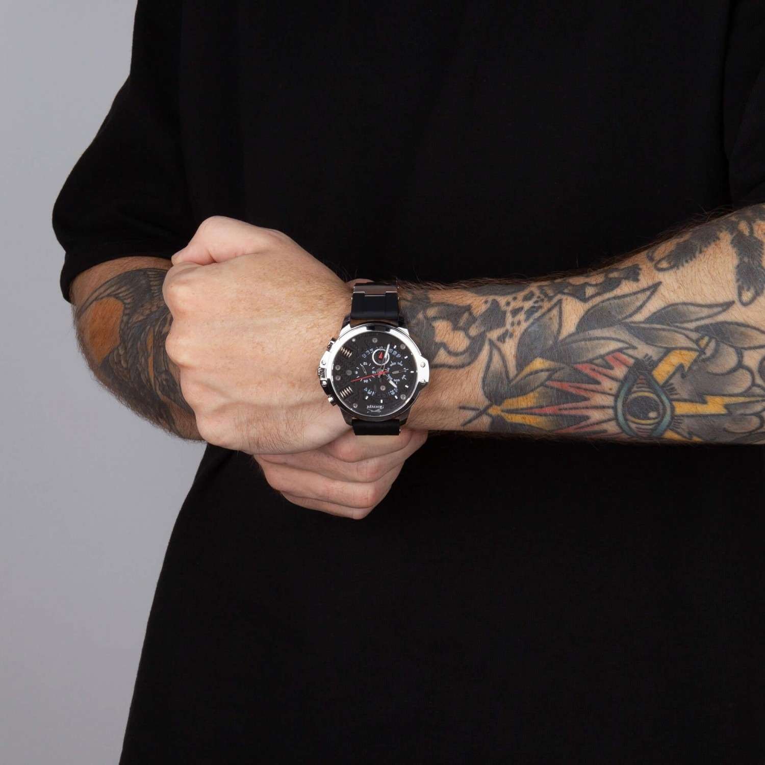 Часы Slazenger SL.09.2212.2.01 представляют собой стильный и функциональный аксессуар, созданный для современных мужчин, ценящих качество и надежность. Они оснащены кварцевым механизмом, который обеспечивает точность хода и минимальную необходимость в обслуживании. Люминесцентное покрытиеЛюминесцентное покрытиеПозволяет считывать показания времени в темноте. Производители наносят на стрелки, часовые индексы, безель или поверхность циферблата светонакопительный состав, дающий холодное свечение. на стрелках и метках обеспечивает отличную видимость в темноте. Благодаря водозащите уровня WR 50 (5 ATM), эти часы отлично справляются с воздействием влаги, что делает их подходящими для повседневного ношения и активного образа жизни. Минеральное стеклоМинеральное стеклоМинеральное стекло представляет собой искусственно выращенный минерал кварца. Такое стекло отличается особой устойчивостью к повреждениям и царапинам. Уступает по некоторым качествам сапфировому стеклу. защищает циферблат от царапин и повреждений, гарантируя долгий срок службы. Корпус часов диаметром 47 мм и толщиной 13 мм выполнен из прочного суперметалла, что придаёт им стильный и современный вид. Силиконовый черный браслет, дополненный элементами из суперметалла, обеспечивает комфорт при носке и надёжно фиксирует часы на запястье, а его размеры (22-20 мм) подходят для большинства мужчин. Часы оснащены рядом полезных функций, таких как индикация даты, дня недели и 24-часовой указатель времени, что делает их не только стильным, но и практичным аксессуаром. Вес модели составляет 110 г, что делает их лёгкими и удобными для ежедневного ношения.