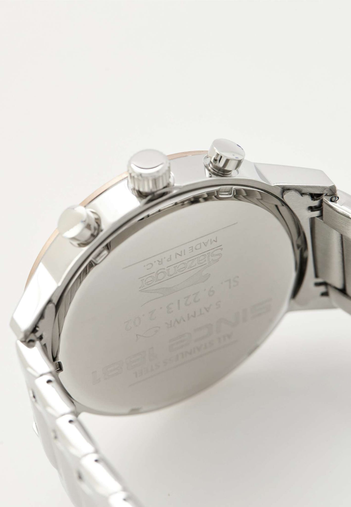 Часы Slazenger SL.09.2213.2.02 представляют собой элегантное сочетание британского стиля и современных технологий, создавая идеальный аксессуар для мужчин, которые ценят как функциональность, так и внешний вид. Эта модель оснащена кварцевым механизмом, обеспечивающим точность хода и долговечность. Корпус часов, выполненный из прочного суперметалла, имеет круглую форму и диаметр 44 мм, что придает им классический и универсальный вид, а безельБезельВнешний ободок, закрепляющий стекло. В спортивных часах так называется поворотное кольцо с делениями на циферблате, выполняет роль таймера – замеряет отрезки времени на шкале. Неподвижный безель – элемент декора. Однонаправленно вращающийся безель на дайверских часах позволяет фиксировать моменты погружения и выныривания на поверхность. с розово-золотистым IP-покрытиемIP-покрытиеМетод ионного напыления. Демонстрирует повышенную устойчивость к истиранию, окислению и химическим веществам. Под воздействием высокого давления и температуры около 1500°C молекулы металла надёжно соединяются с частицами корпуса часов.. Минеральное стеклоМинеральное стеклоМинеральное стекло представляет собой искусственно выращенный минерал кварца. Такое стекло отличается особой устойчивостью к повреждениям и царапинам. Уступает по некоторым качествам сапфировому стеклу. защищает циферблат, устойчивый к царапинам и повреждениям, а его черный цвет добавляет оригинальности и строгости образу. Серебристый браслет, также изготовленный из суперметалла, обеспечивает комфорт и надежную фиксацию на запястье, подчеркивая стиль владельца, он оснащён раскладной застёжкойРаскладная застёжкаТакой тип застёжки используется только на браслетах из металла. Она никогда не раскрывается полностью, происходит разделение на 2 и более частей. Раскладывающая застёжка снизит вероятность потери часов к минимуму. с системой блокировки, обеспечивая надёжную фиксацию на запястье. Часы обладают степенью водозащиты WR 50 (5 ATM), что позволяет использовать их в различных условиях, не опасаясь за их сохранность. Люминесцентное покрытиеЛюминесцентное покрытиеПозволяет считывать показания времени в темноте. Производители наносят на стрелки, часовые индексы, безель или поверхность циферблата светонакопительный состав, дающий холодное свечение. обеспечивает удобное считывание времени в темноте, а часовые индексы на циферблате делают отображение времени четким и понятным. Модель также оснащена функцией отображения даты, добавляя практичности и удобства в повседневной жизни. Этот аксессуар прекрасно подойдет для деловых встреч, повседневного ношения или особых случаев, сочетая в себе стиль и функциональность.