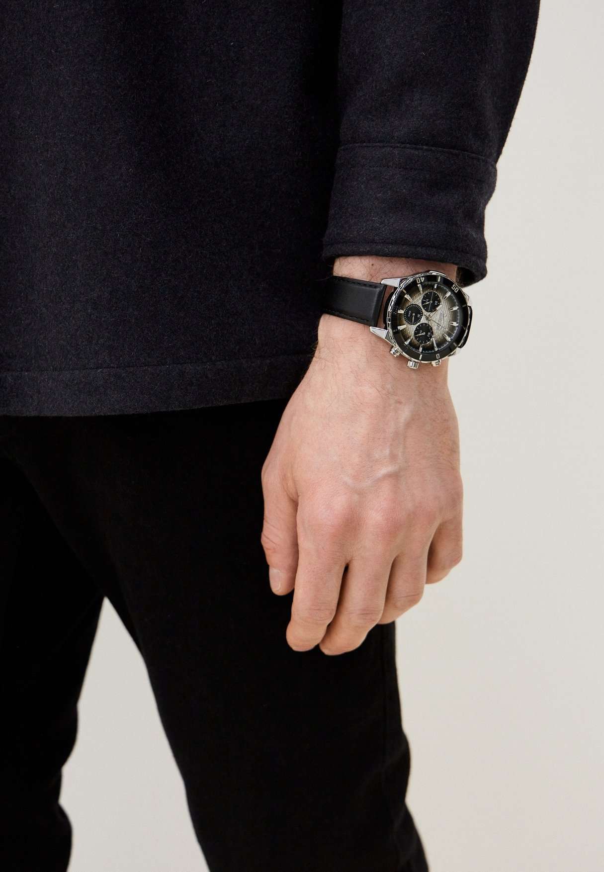 Часы Slazenger SL.09.2237.2.01 — это стильная и надежная модель, которая станет отличным выбором для активного современного мужчины. Крупный корпус диаметром 46 мм выполнен из прочного металла, а черный кожаный ремешок с классической застежкой, что обеспечивает комфорт при повседневном ношении. На безельБезельВнешний ободок, закрепляющий стекло. В спортивных часах так называется поворотное кольцо с делениями на циферблате, выполняет роль таймера – замеряет отрезки времени на шкале. Неподвижный безель – элемент декора. Однонаправленно вращающийся безель на дайверских часах позволяет фиксировать моменты погружения и выныривания на поверхность. нанесено черное IP-покрытиеIP-покрытиеМетод ионного напыления. Демонстрирует повышенную устойчивость к истиранию, окислению и химическим веществам. Под воздействием высокого давления и температуры около 1500°C молекулы металла надёжно соединяются с частицами корпуса часов.. Минеральное стеклоМинеральное стеклоМинеральное стекло представляет собой искусственно выращенный минерал кварца. Такое стекло отличается особой устойчивостью к повреждениям и царапинам. Уступает по некоторым качествам сапфировому стеклу. защищает текстурированный черно-белый циферблат с градиентом от случайных царапин, а водозащита уровня WR 50 позволяет не переживать о попадании влаги при контакте с водой. На циферблате расположены дополнительные малые циферблаты с отображением даты, дня недели и времени в 24-часовом формате, что делает использование часов максимально функциональным. Для удобства использования в темное время суток предусмотрено люминесцентное покрытиеЛюминесцентное покрытиеПозволяет считывать показания времени в темноте. Производители наносят на стрелки, часовые индексы, безель или поверхность циферблата светонакопительный состав, дающий холодное свечение. стрелок. Толщина корпуса составляет 12 мм, вес часов — 76 грамма.
