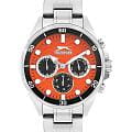 Мужские кварцевые часы Slazenger SL.09.2309.2.05 — это выразительный и функциональный аксессуар, сочетающий прочность, стиль и насыщенную комплектацию. Корпус и браслет выполнены из суперметалла, защищён минеральным стекломМинеральное стеклоМинеральное стекло представляет собой искусственно выращенный минерал кварца. Такое стекло отличается особой устойчивостью к повреждениям и царапинам. Уступает по некоторым качествам сапфировому стеклу.. Циферблат оранжевого цвета оформлен с вынесенными малыми циферблатами для индикации дня недели, даты и времени в 24-часовом формате. Стрелки и метки оснащены люминесцентным покрытиемЛюминесцентное покрытиеПозволяет считывать показания времени в темноте. Производители наносят на стрелки, часовые индексы, безель или поверхность циферблата светонакопительный состав, дающий холодное свечение., обеспечивающим хорошую читаемость в темноте. Заводная головка снабжена защитой, а задняя крышка — завинчивающаяся, что повышает надёжность конструкции. Браслет из суперметалла фиксируется на раскладной застёжкеРаскладная застёжкаТакой тип застёжки используется только на браслетах из металла. Она никогда не раскрывается полностью, происходит разделение на 2 и более частей. Раскладывающая застёжка снизит вероятность потери часов к минимуму., обеспечивая удобство и безопасность ношения. Водонепроницаемость 50 м позволяет использовать часы в повседневных условиях, защищая от случайных брызг и капель дождя. Модель подчёркивает индивидуальность владельца и идеально подходит как для повседневного, так и для делового образа.